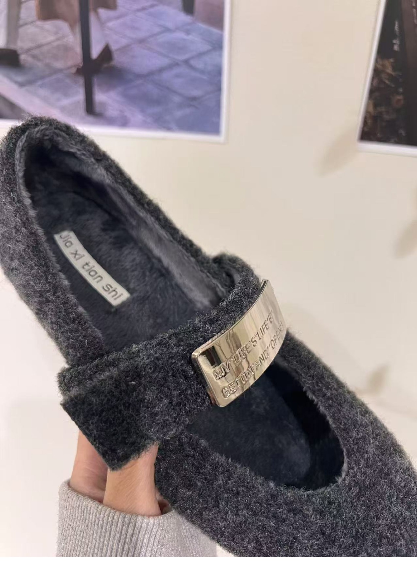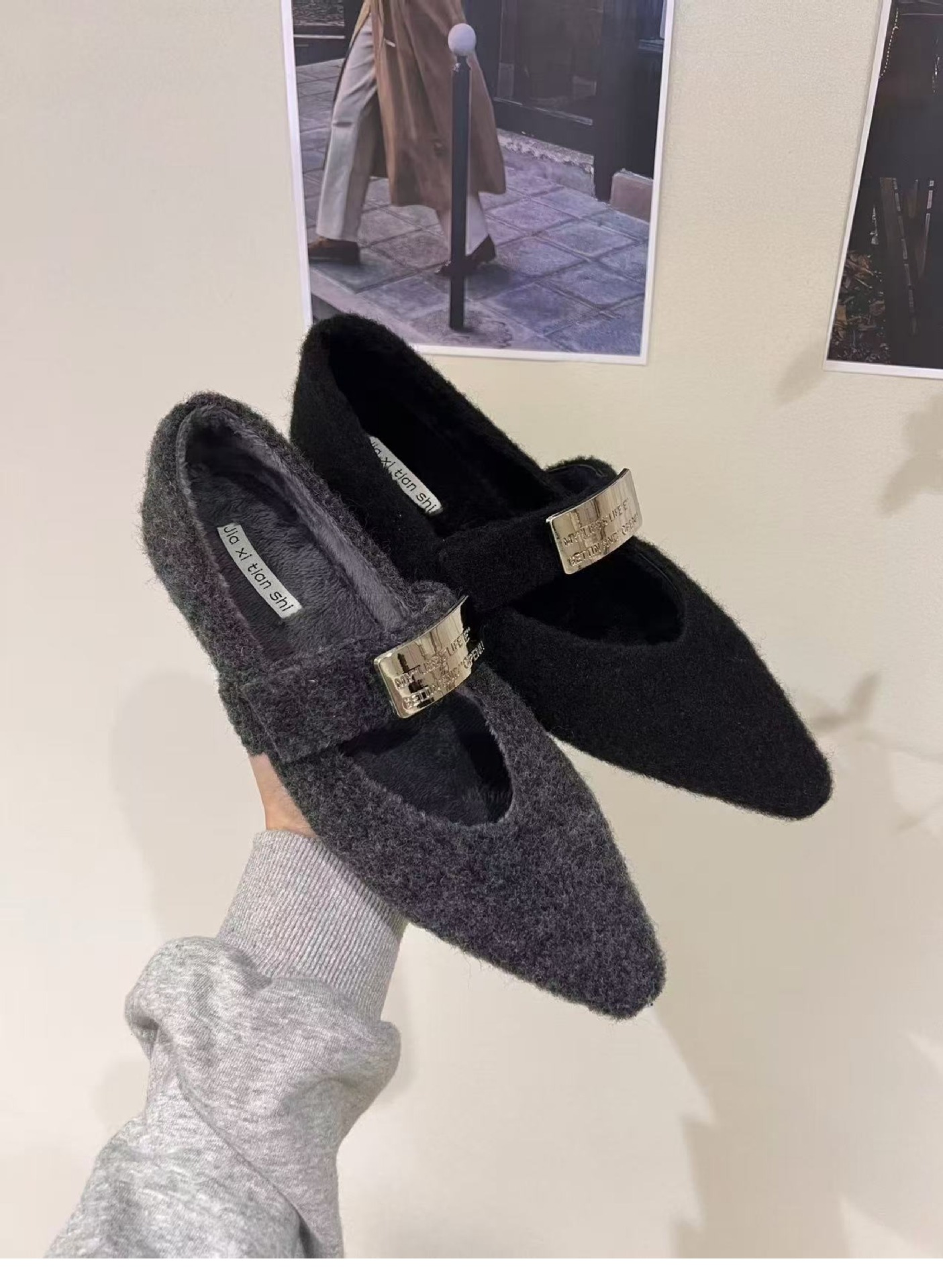 내부 높이 프랑스 메리 제인 마오 신발 여성 신발 외부 착용 2024 가을 겨울 기모 원피스 저녁 신발