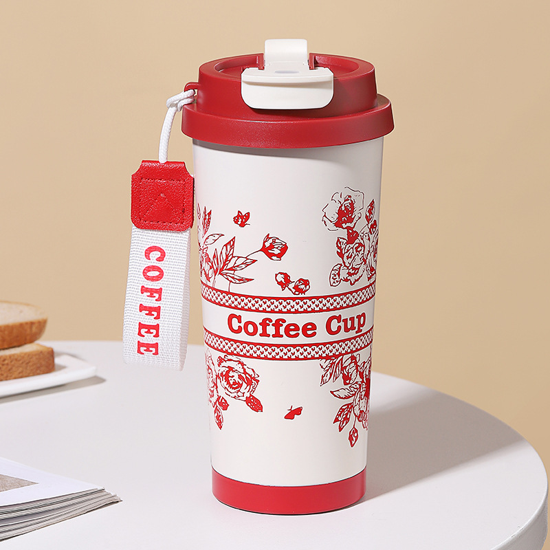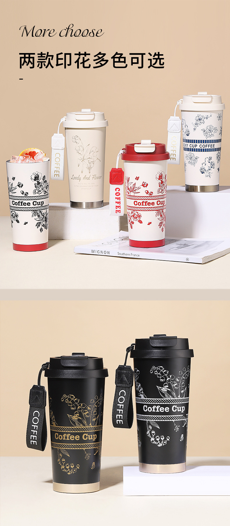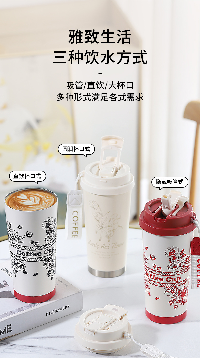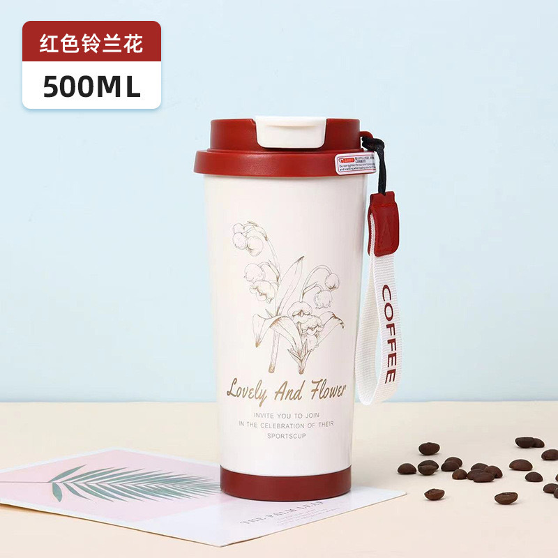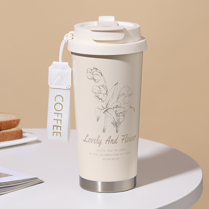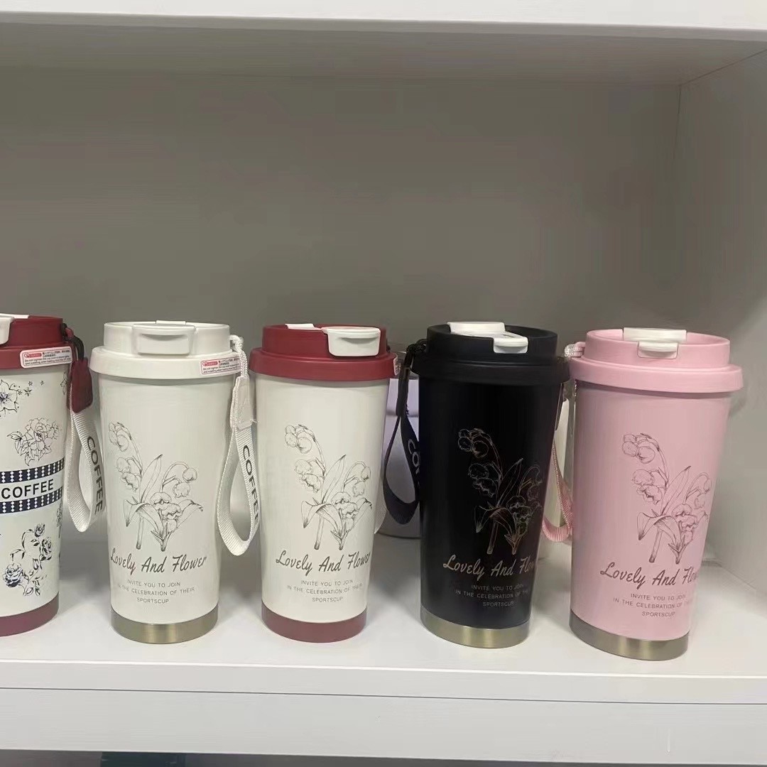 계곡 자동차 보온병 컵 밀짚 컵의 휴대용 304 스테인리스 물 컵 백합 소녀를위한 고가의 이중 음료 커피 컵