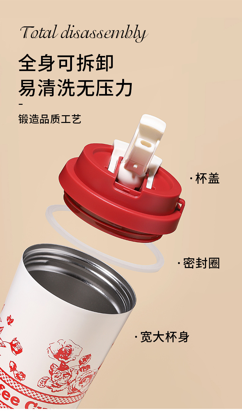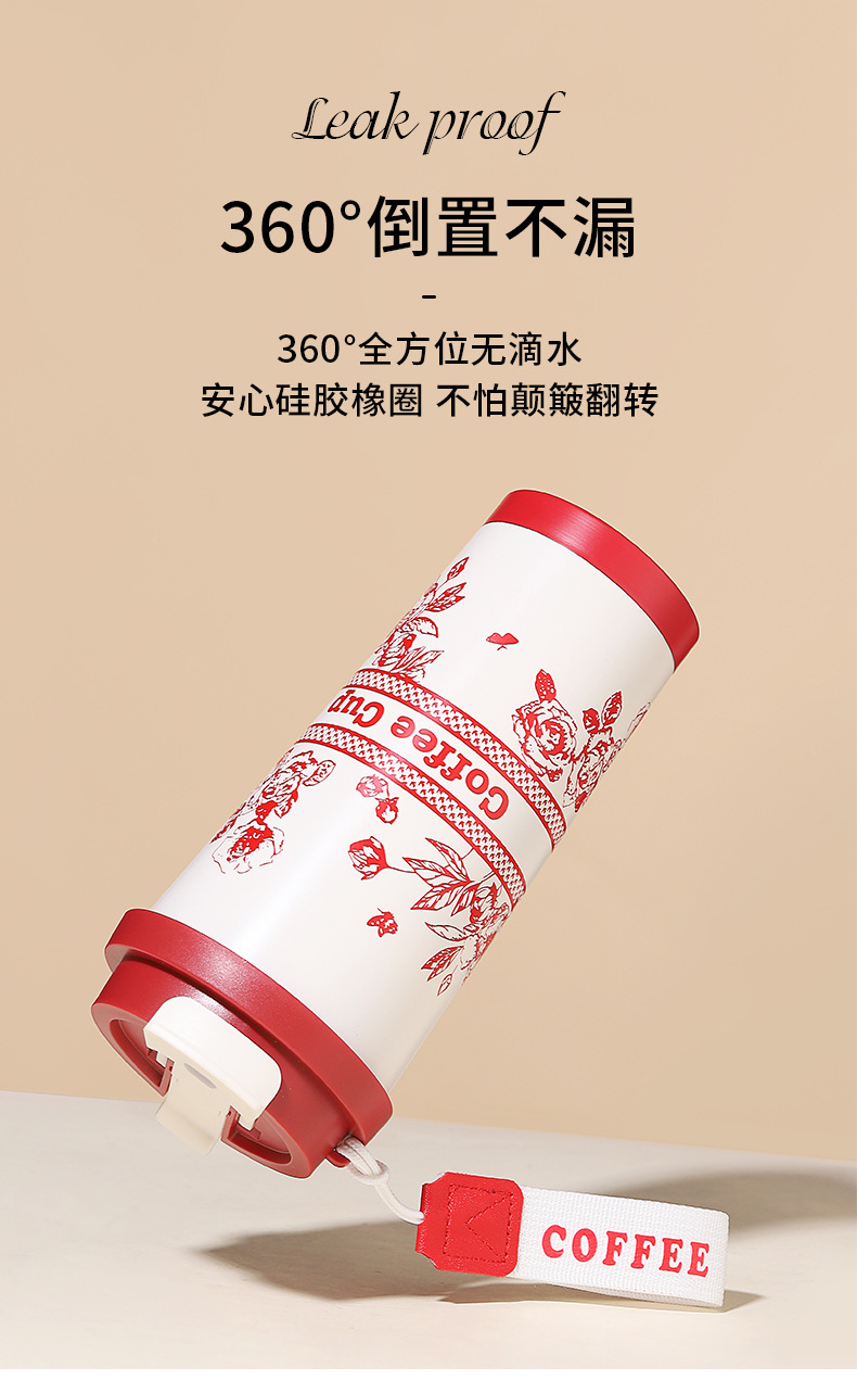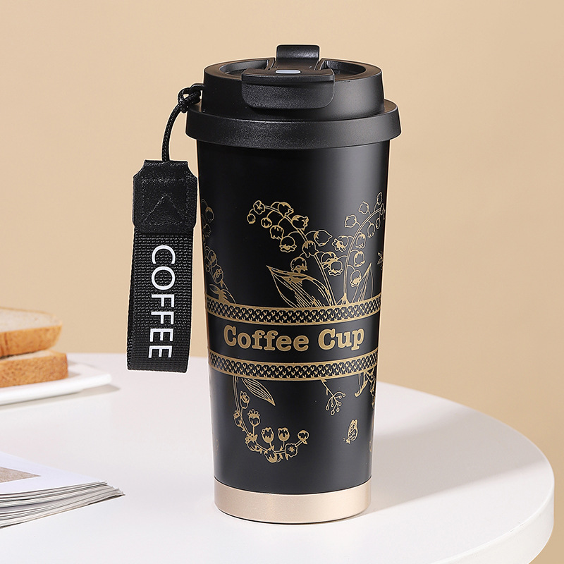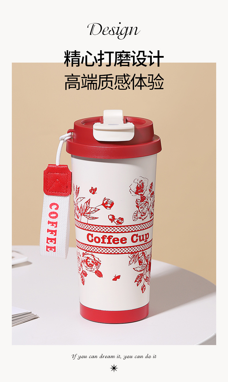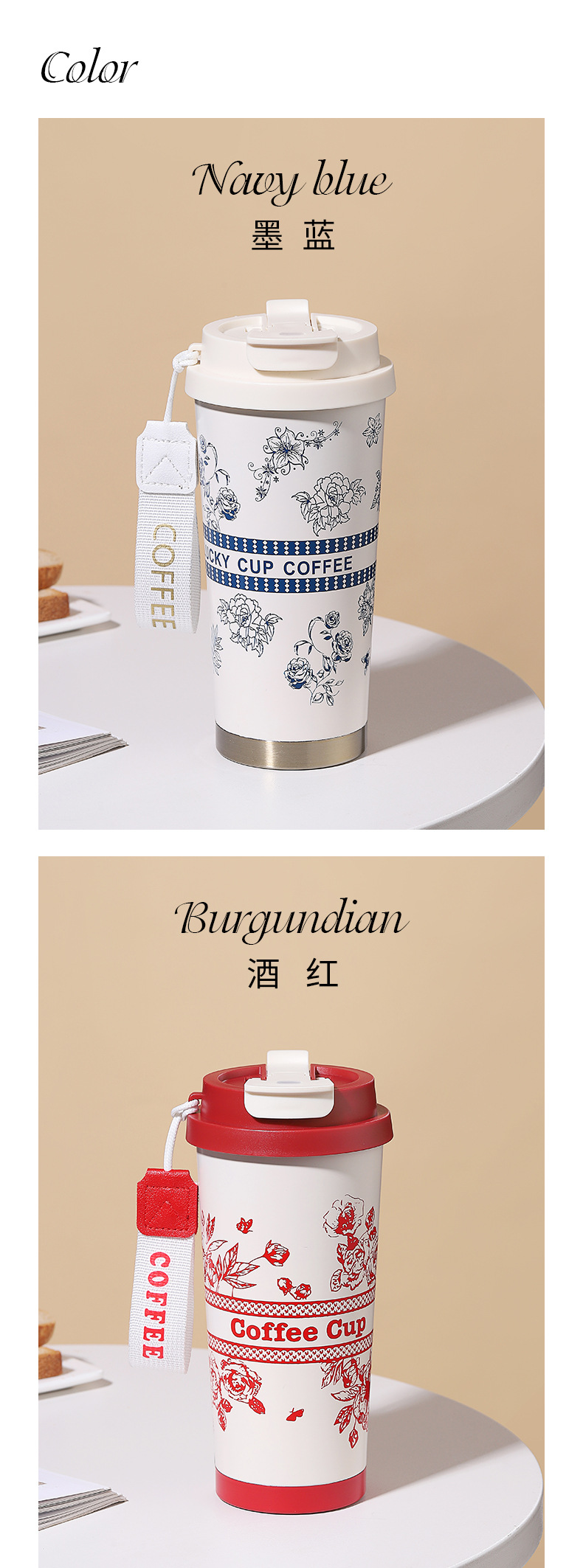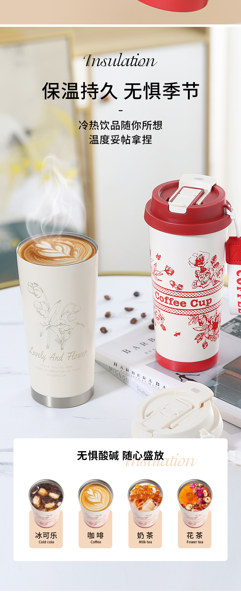 계곡 자동차 보온병 컵 밀짚 컵의 휴대용 304 스테인리스 물 컵 백합 소녀를위한 고가의 이중 음료 커피 컵