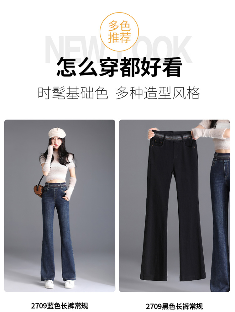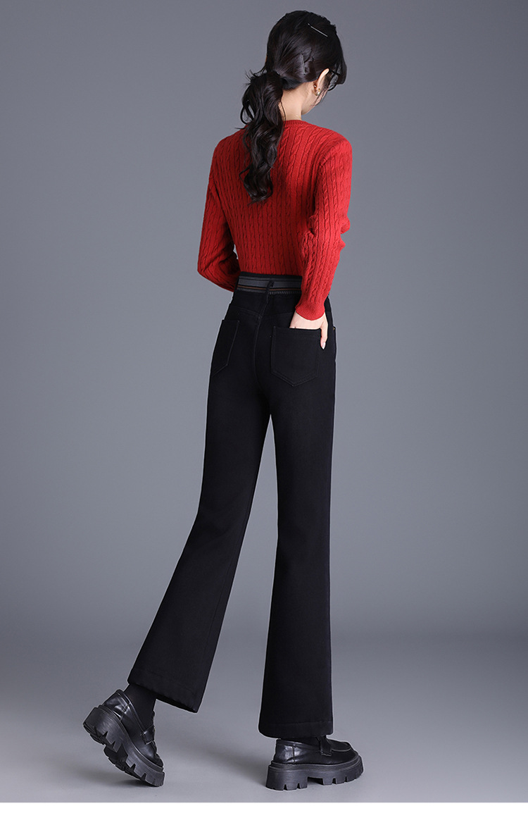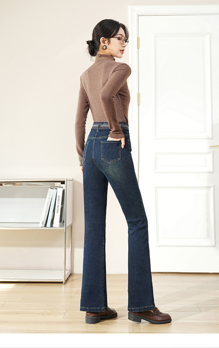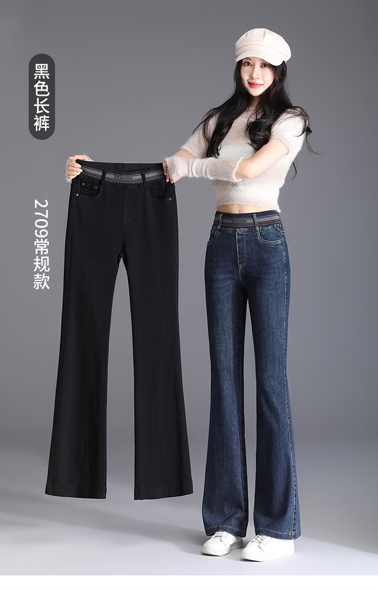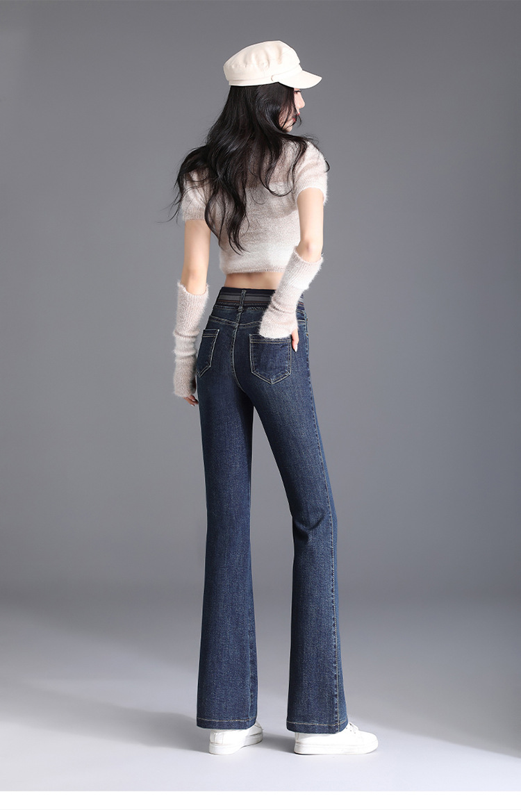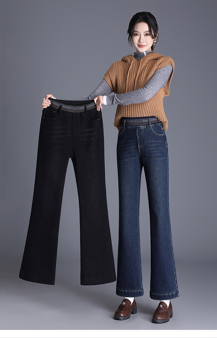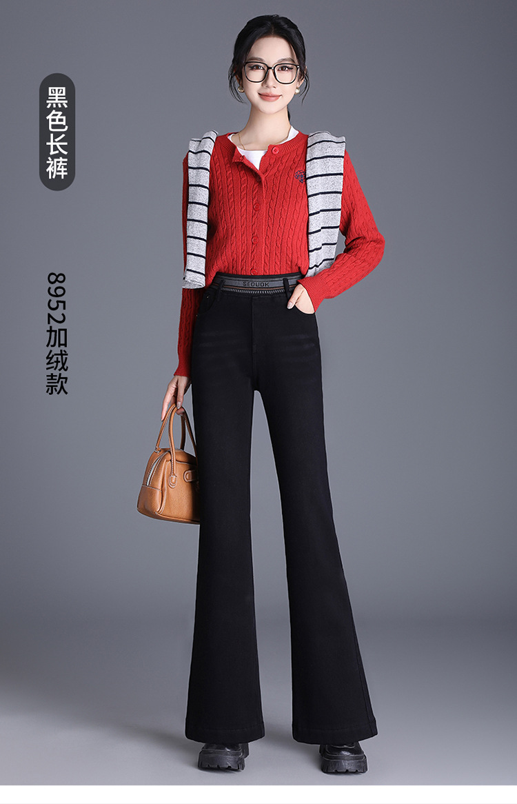 자른 스트레치 데님 바지 여성용 높은 허리 가을 겨울 기모 작은 슬림 핏 다리-긴 트럼펫 바지