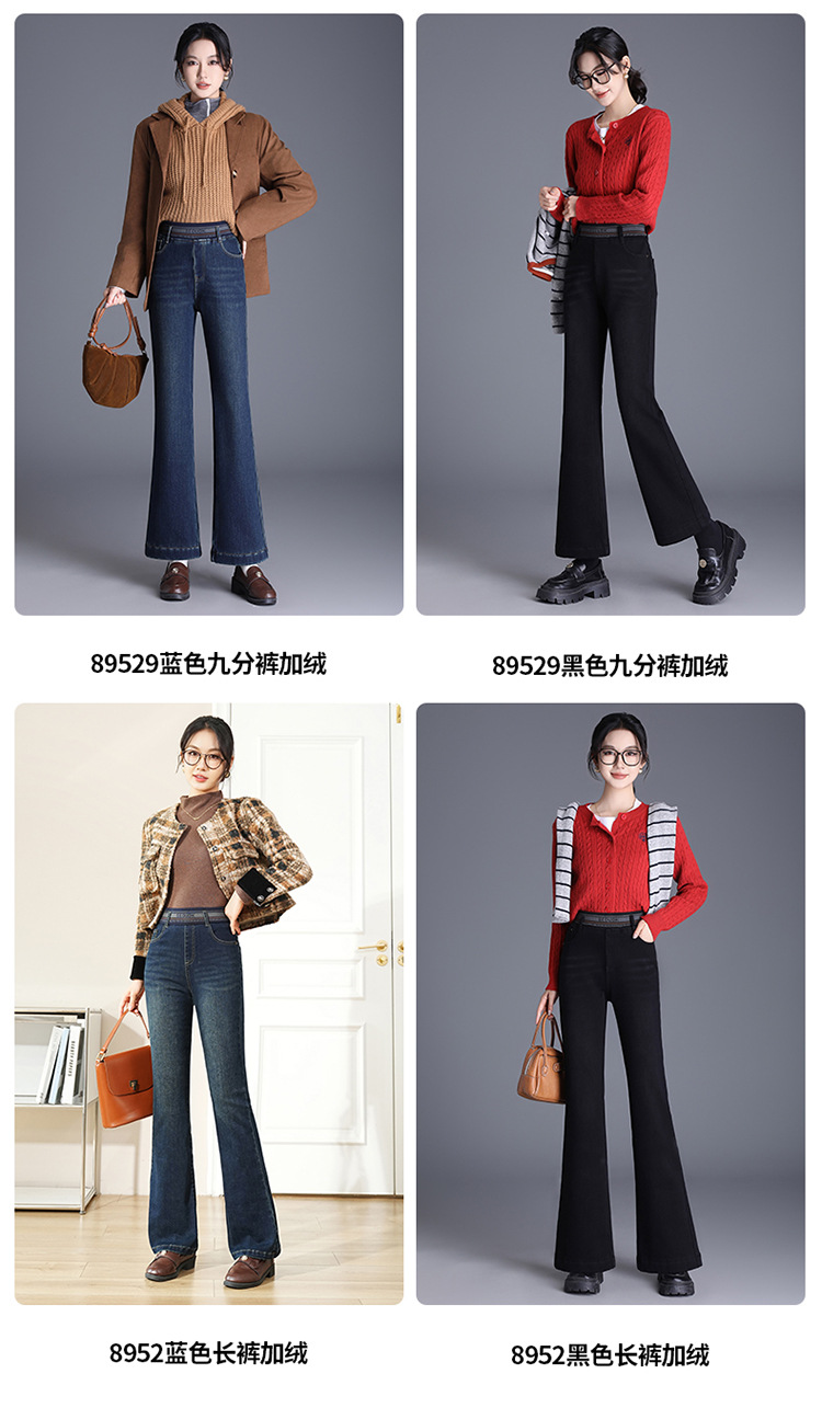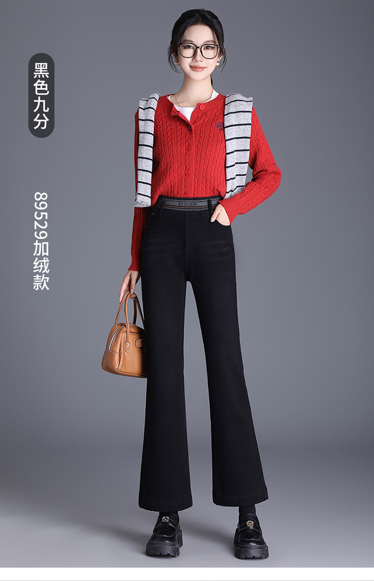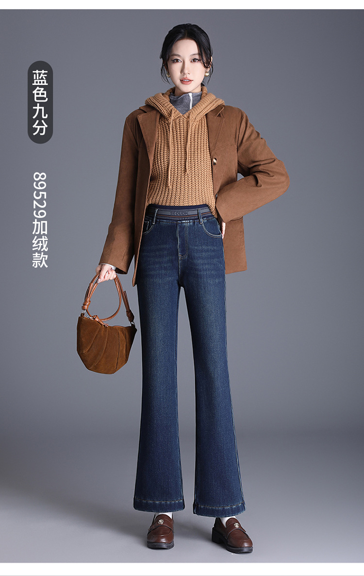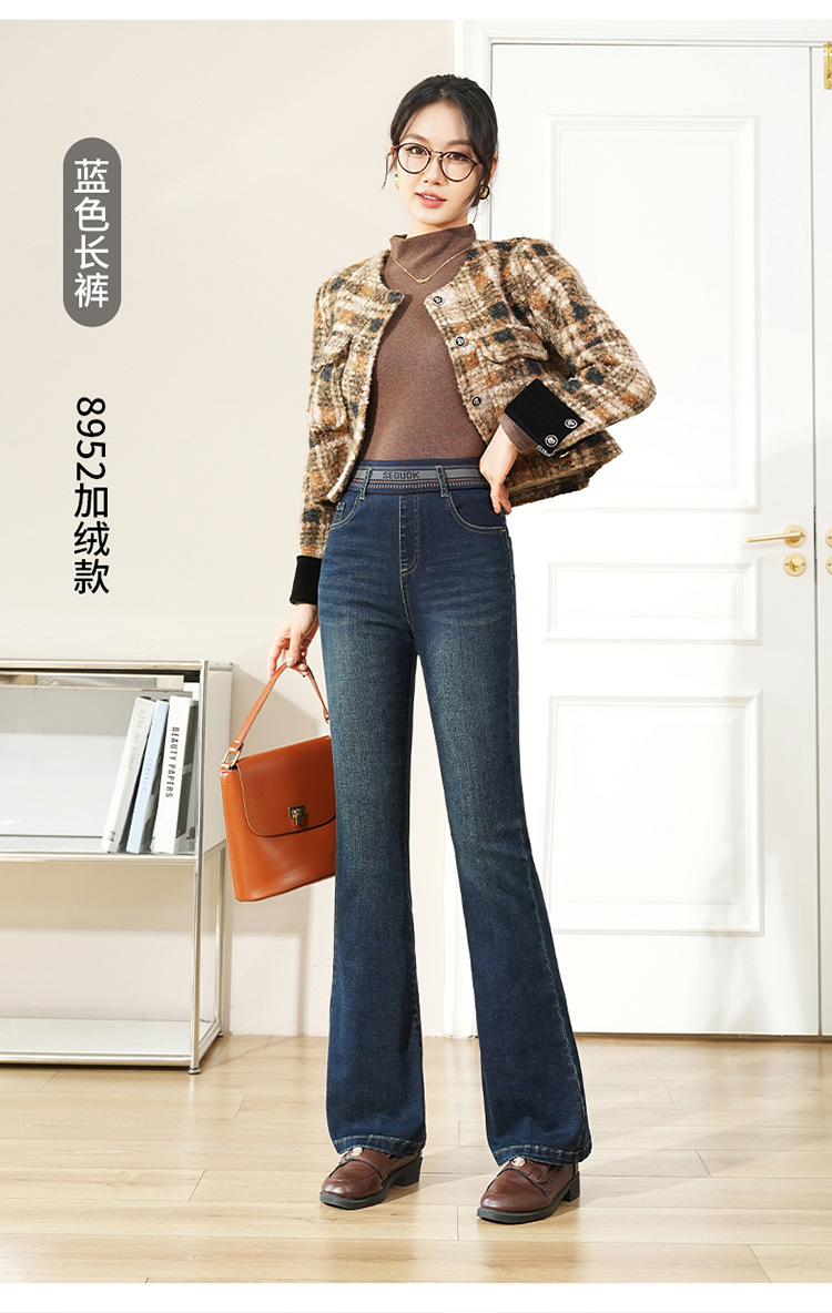 자른 스트레치 데님 바지 여성용 높은 허리 가을 겨울 기모 작은 슬림 핏 다리-긴 트럼펫 바지스토어 가기