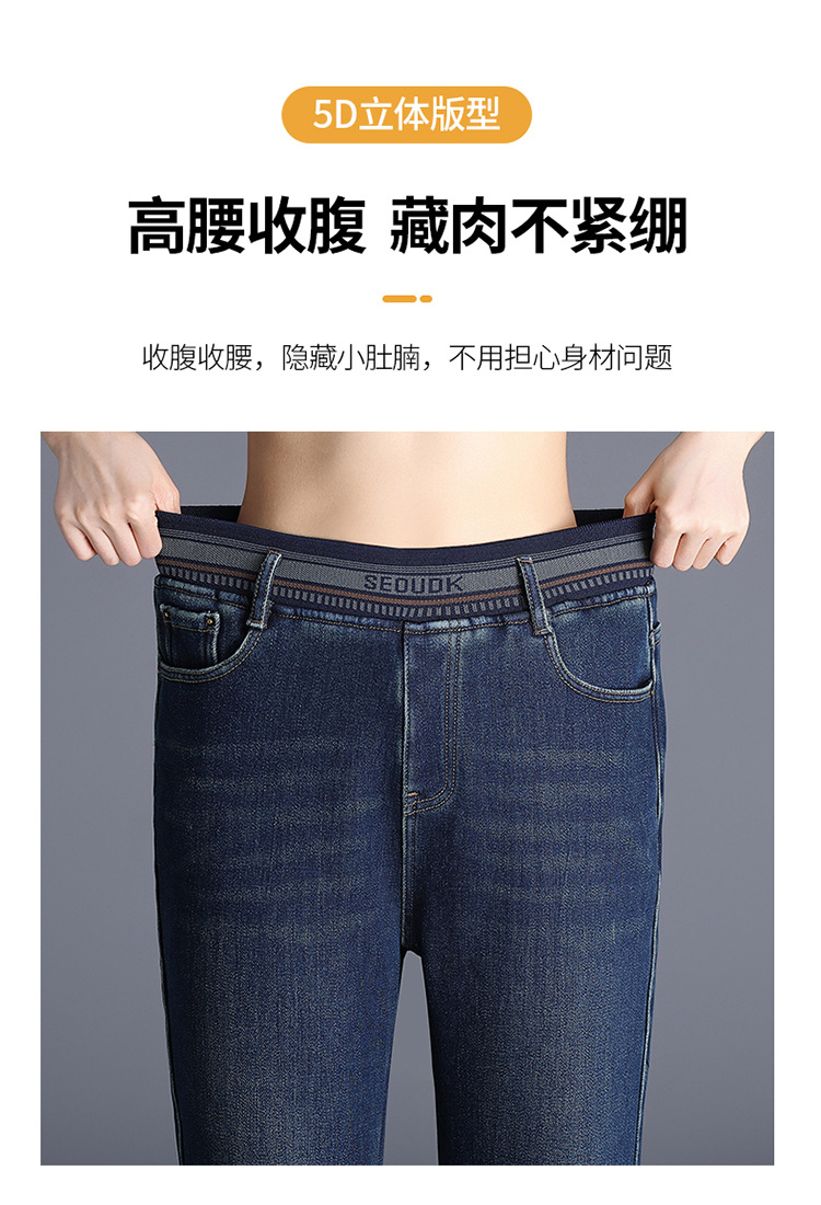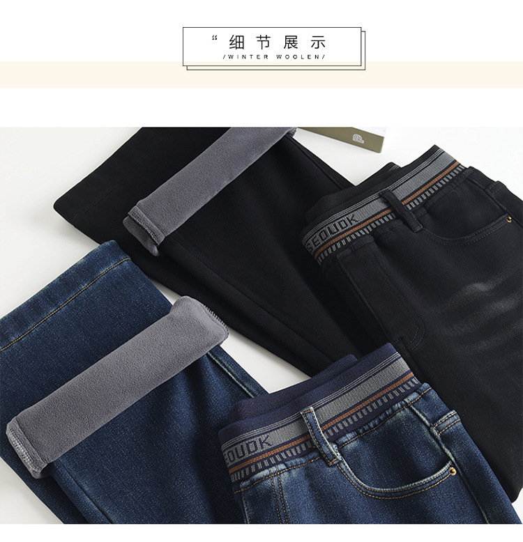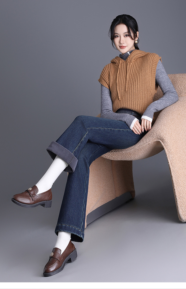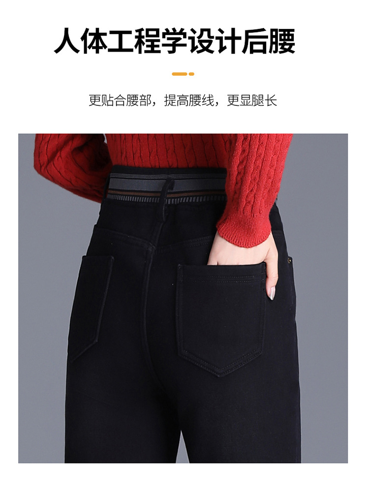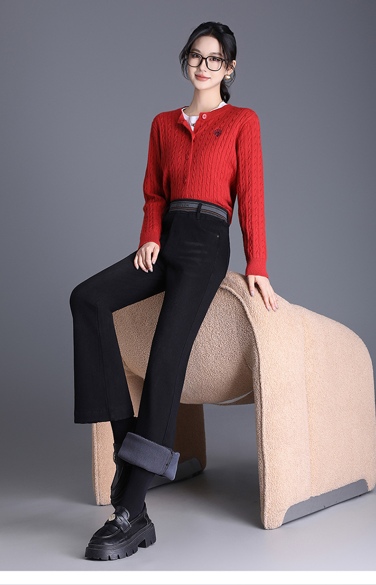 자른 스트레치 데님 바지 여성용 높은 허리 가을 겨울 기모 작은 슬림 핏 다리-긴 트럼펫 바지스토어 가기