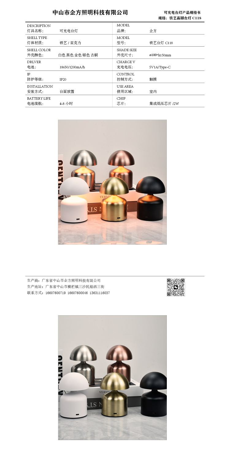 국경 LED 충전식 책상 램프 장식 팻 라이트 바 분위기 빛 맑은 바 대외 무역 캠핑 디밍 침대 옆 야간 조명