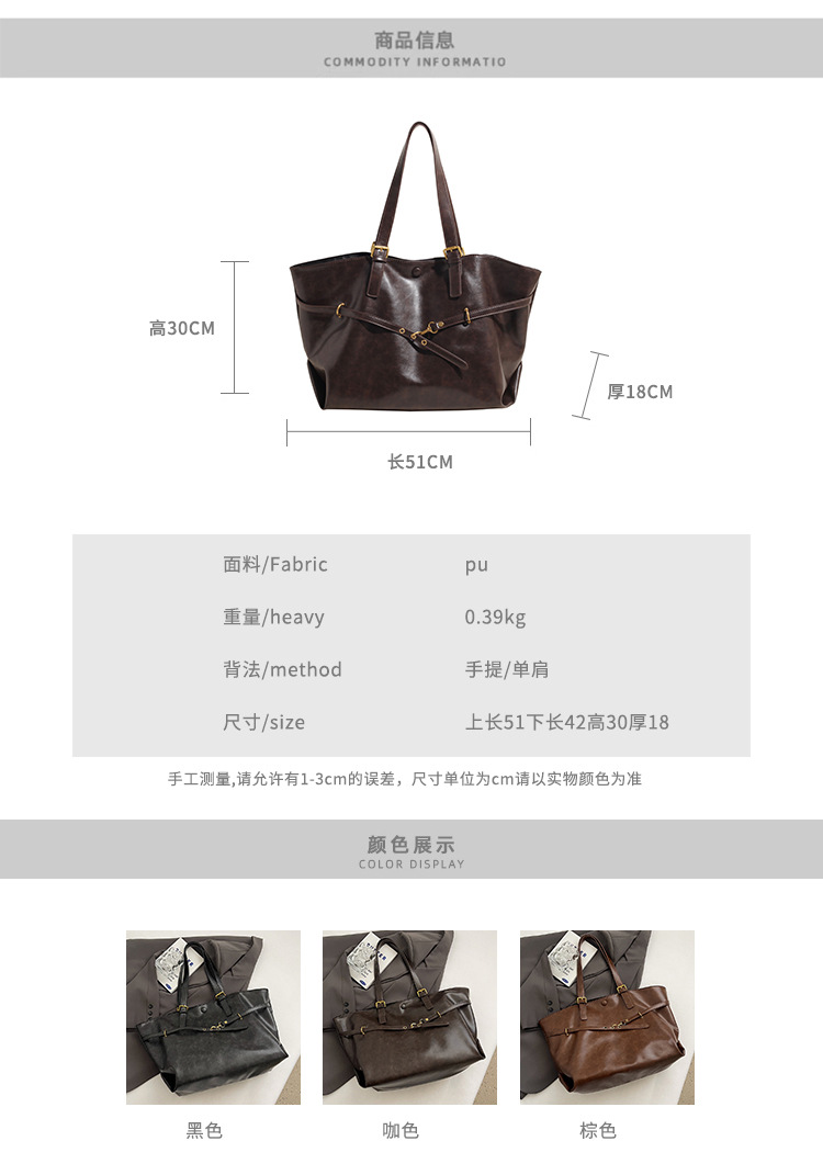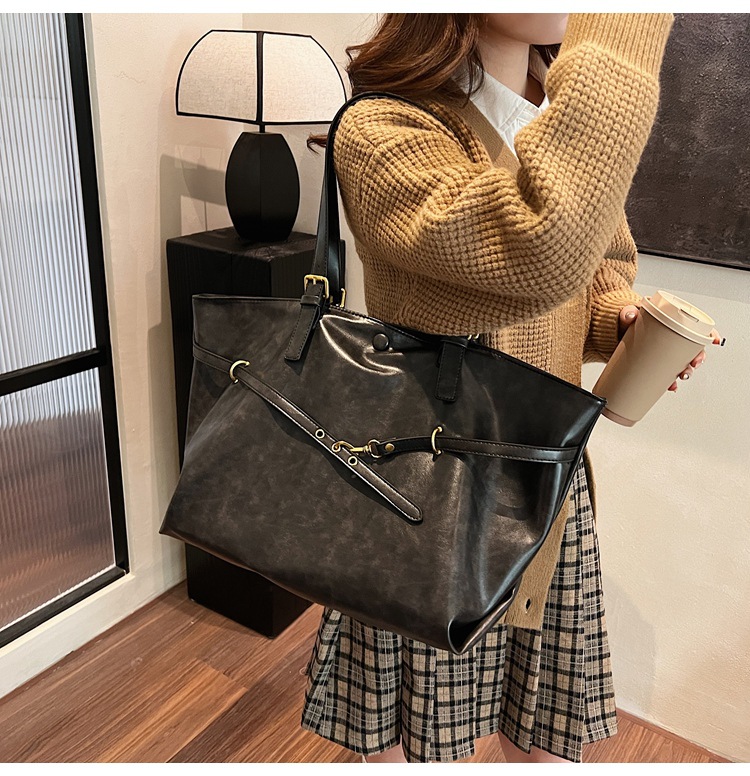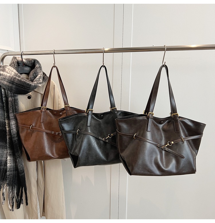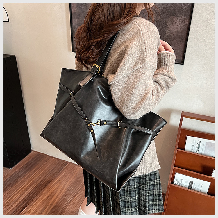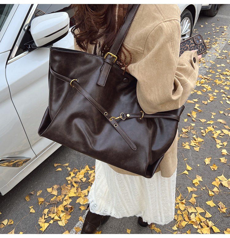 캐주얼 통근자 레트로 대용량 가방 여성의 2024 새로운 유행 가을 겨울 올 매치 숄더 백 휴대용 토트 백스토어 가기