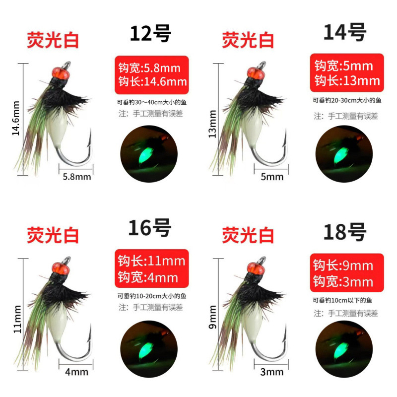 유독 한 모기 플라이 후크 세트 마이크로 오브젝트 루야 미끼 말 입 낚시 그룹 후크 박스 화이트 스트립 푸드 스트립과 혼합 입 생체 공학 가짜 미끼