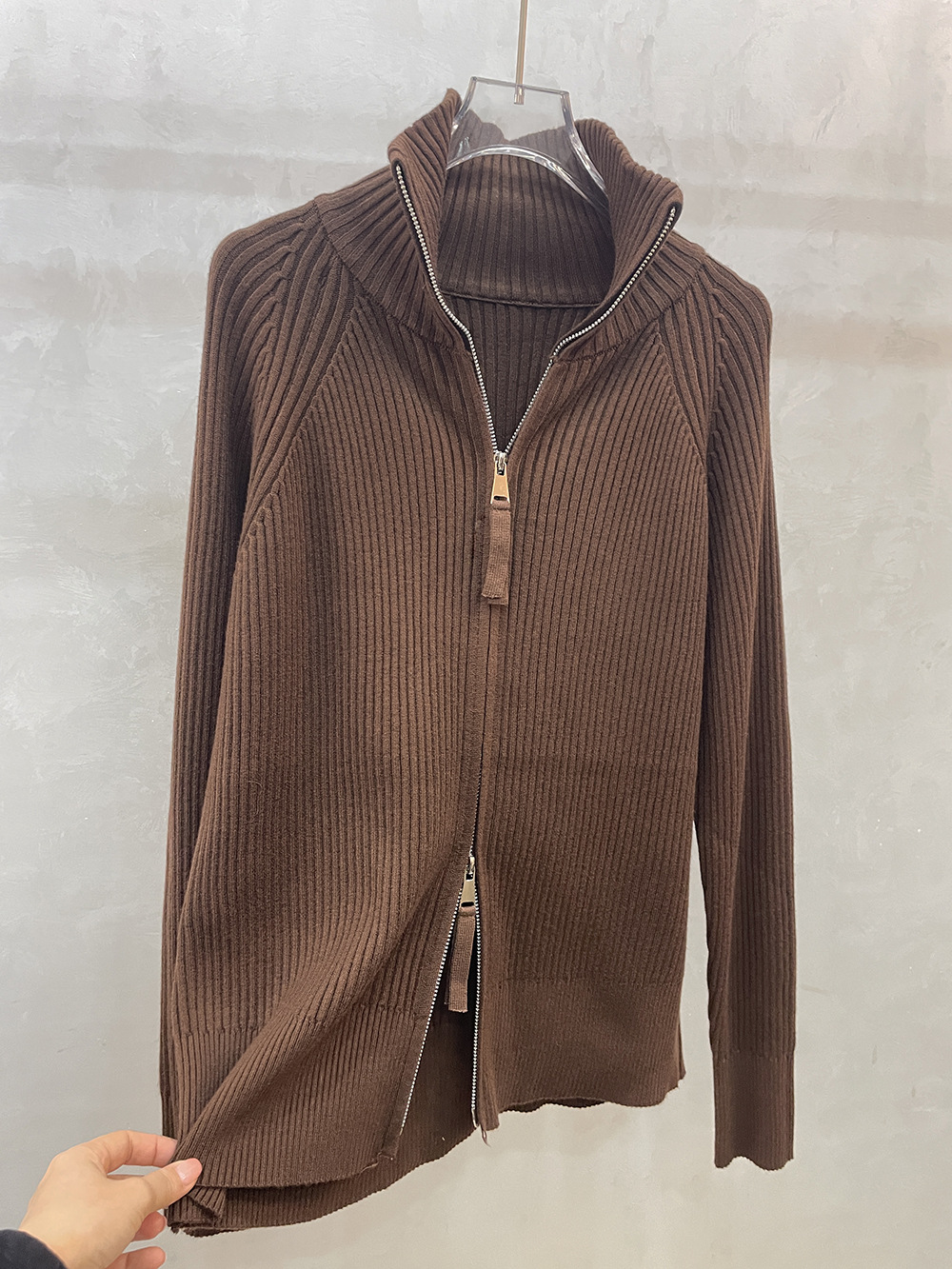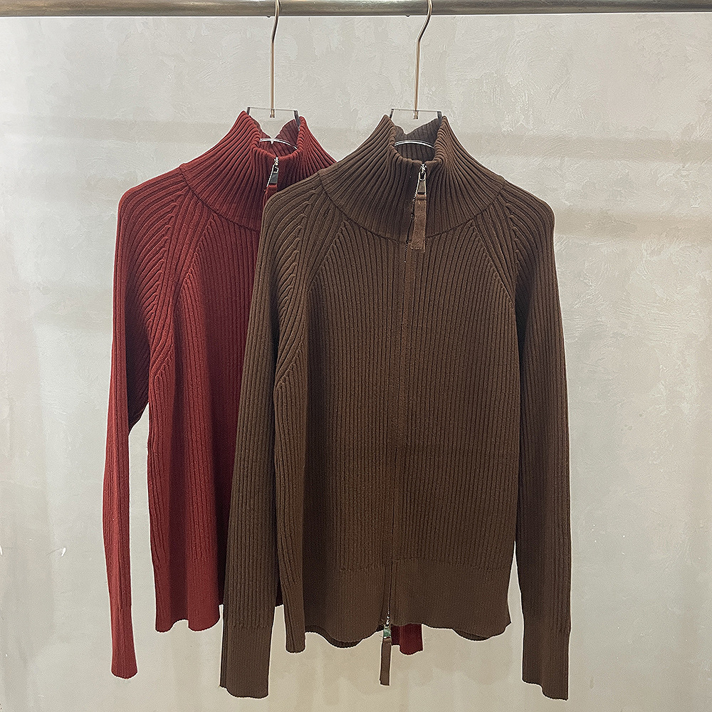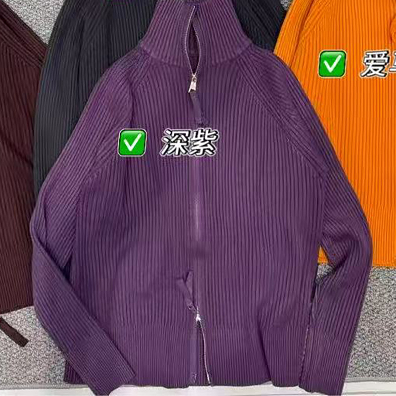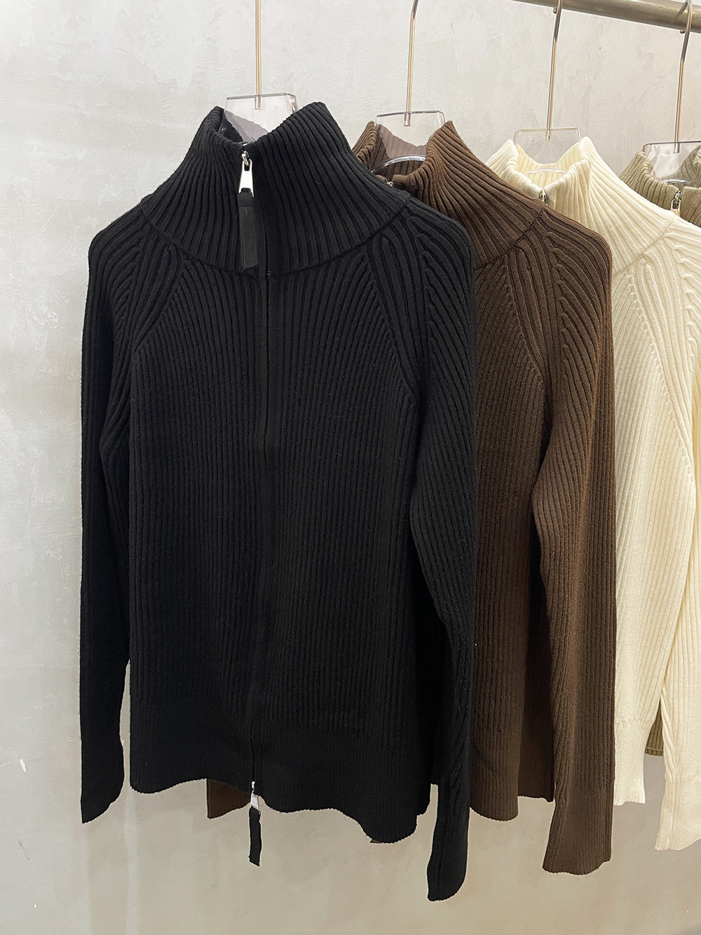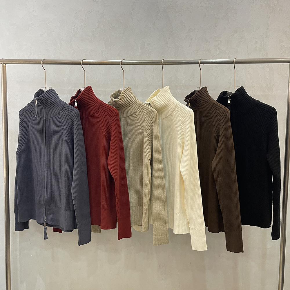 더블 지퍼 라펠 스탠드 칼라 두꺼운 니트 가디건 스웨터 여성용 가을 겨울 외출용 루즈핏 캐주얼 스타일 긴팔 상의스토어 가기