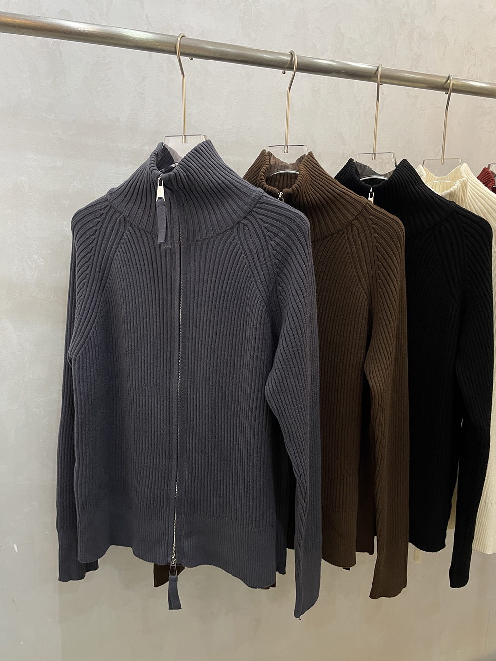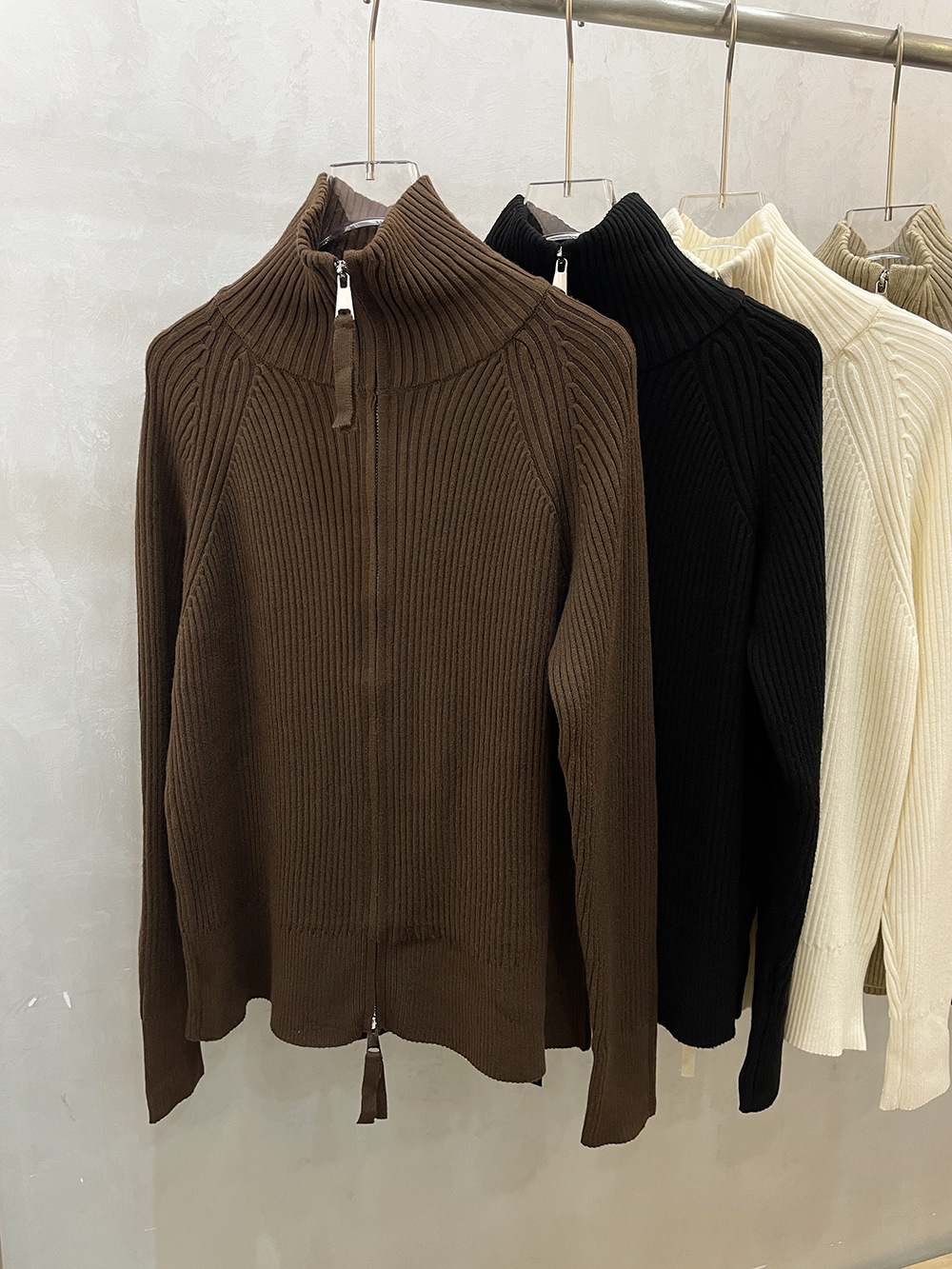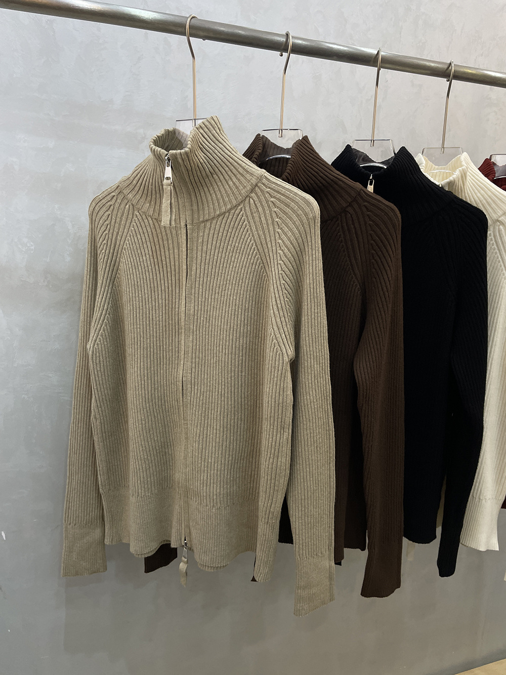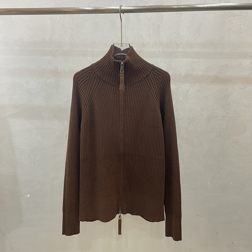 더블 지퍼 라펠 스탠드 칼라 두꺼운 니트 가디건 스웨터 여성용 가을 겨울 외출용 루즈핏 캐주얼 스타일 긴팔 상의스토어 가기