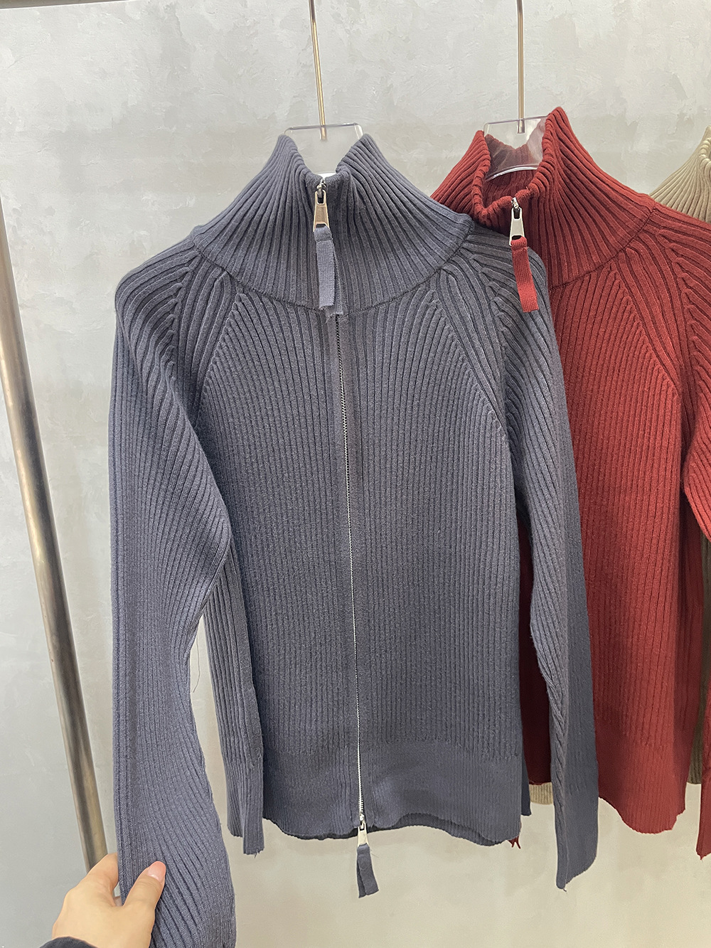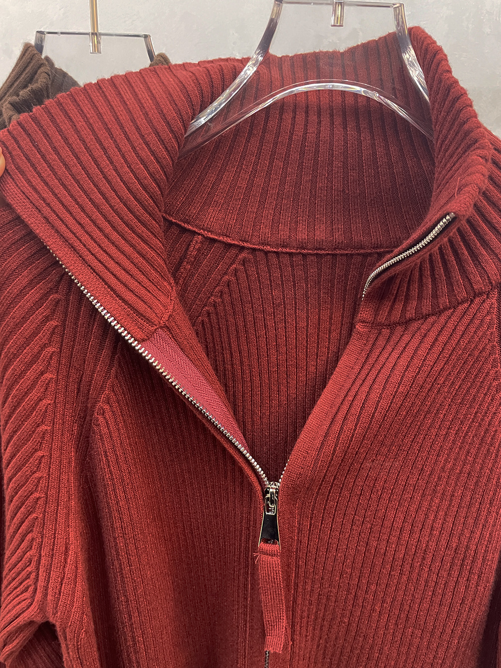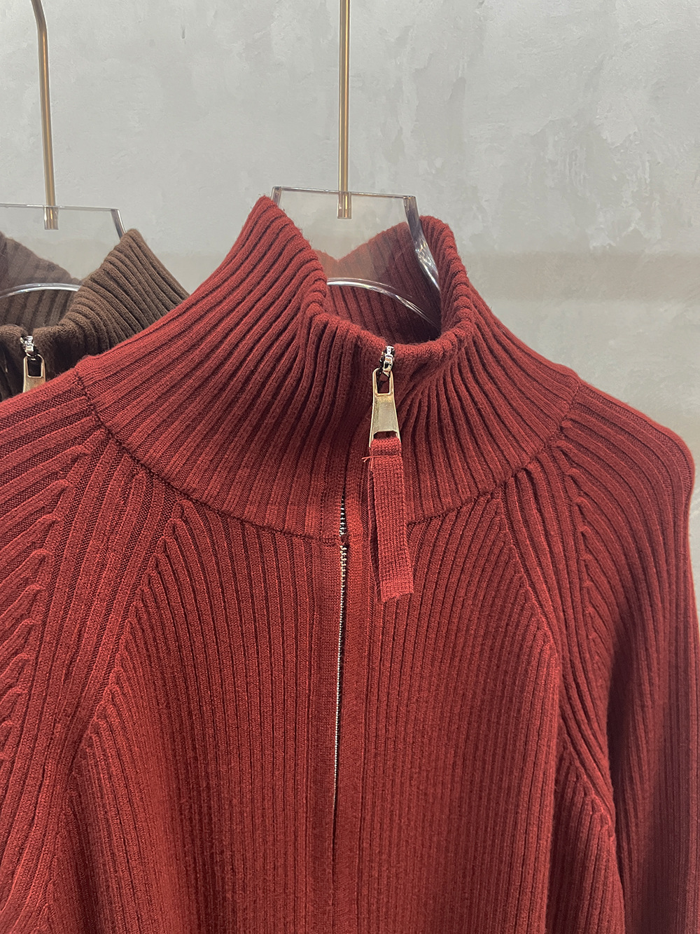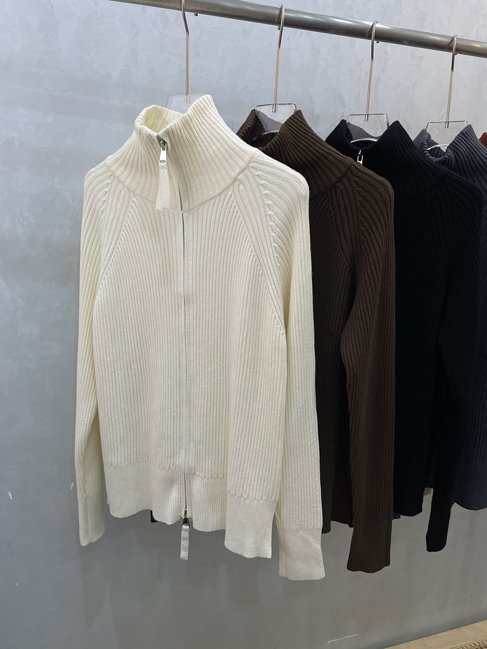 더블 지퍼 라펠 스탠드 칼라 두꺼운 니트 가디건 스웨터 여성용 가을 겨울 외출용 루즈핏 캐주얼 스타일 긴팔 상의스토어 가기