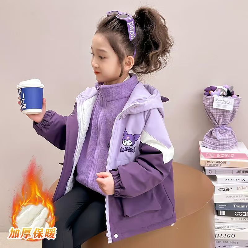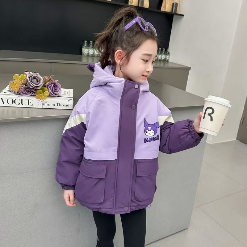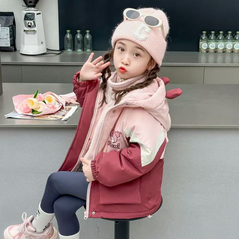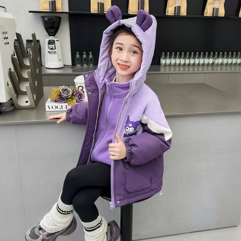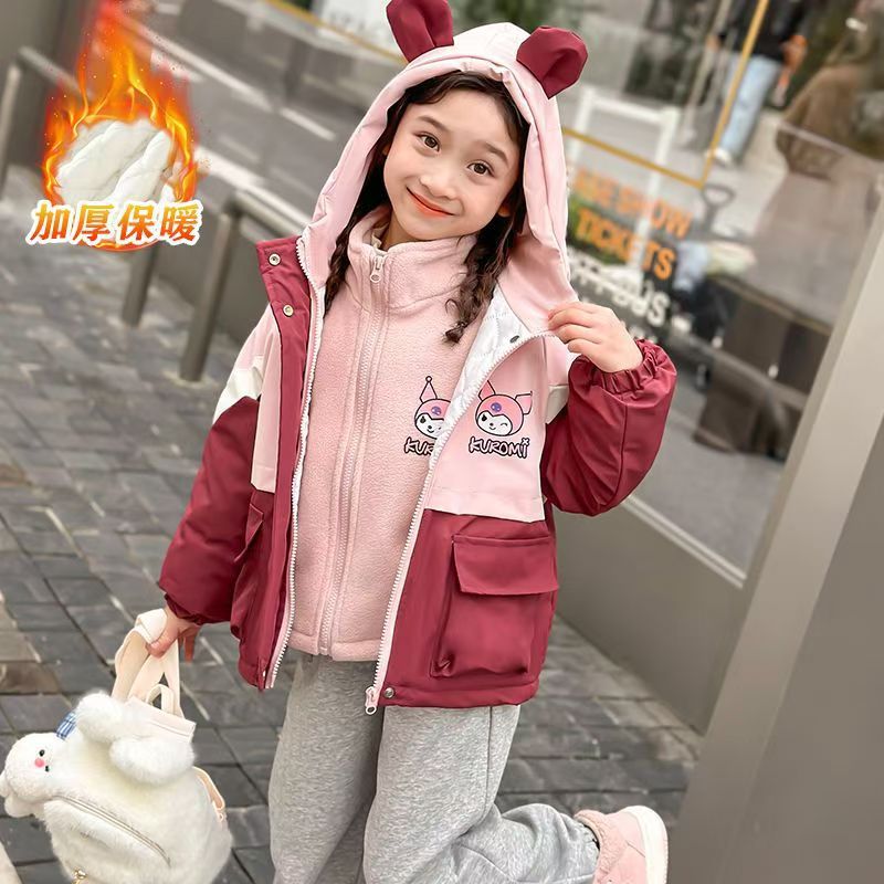 2024 년 새로운 소녀 kulomi 코튼 패딩 코트 가을과 겨울 어린이 폭행 의류 3 대 1 아기면 패딩 재킷