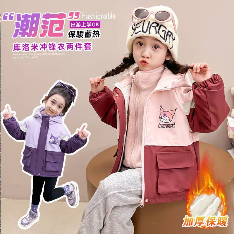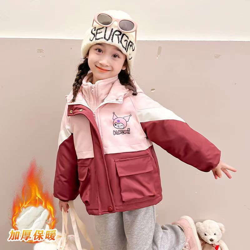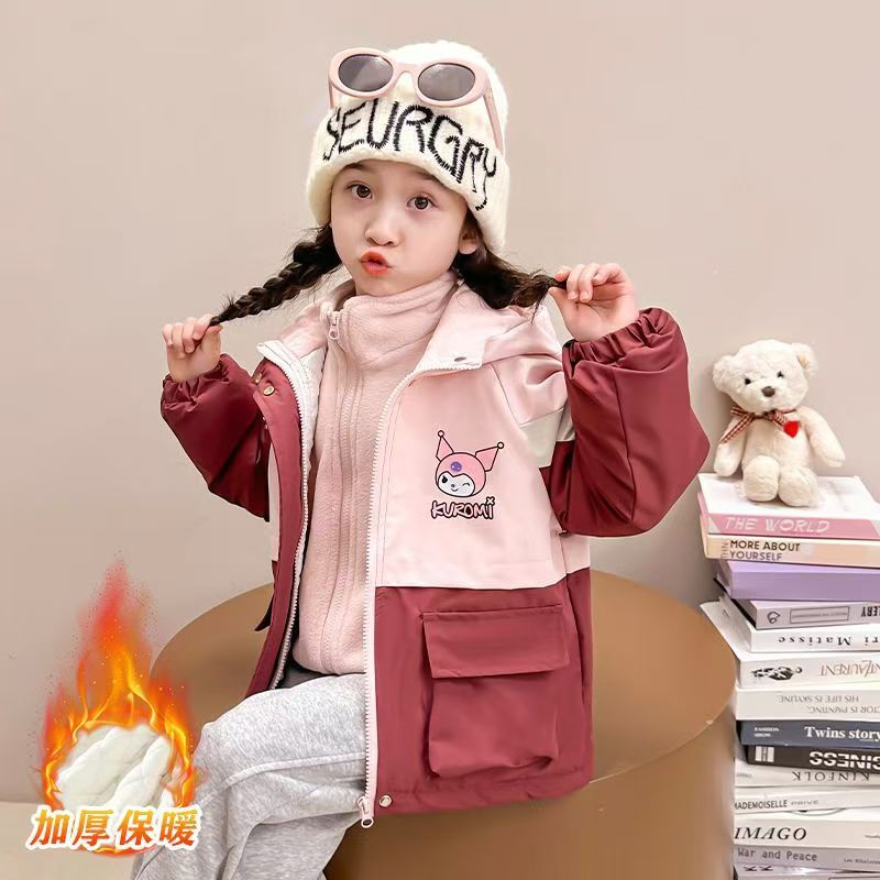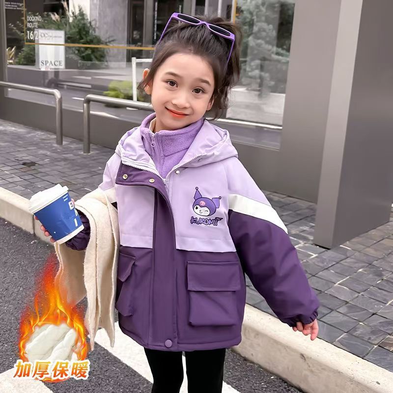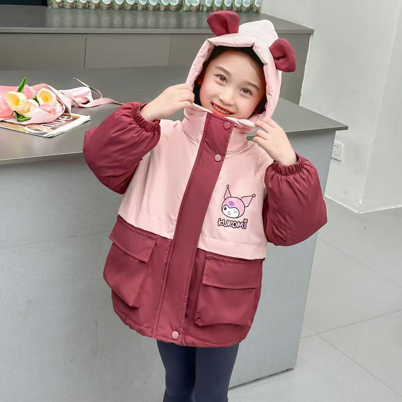 2024 년 새로운 소녀 kulomi 코튼 패딩 코트 가을과 겨울 어린이 폭행 의류 3 대 1 아기면 패딩 재킷