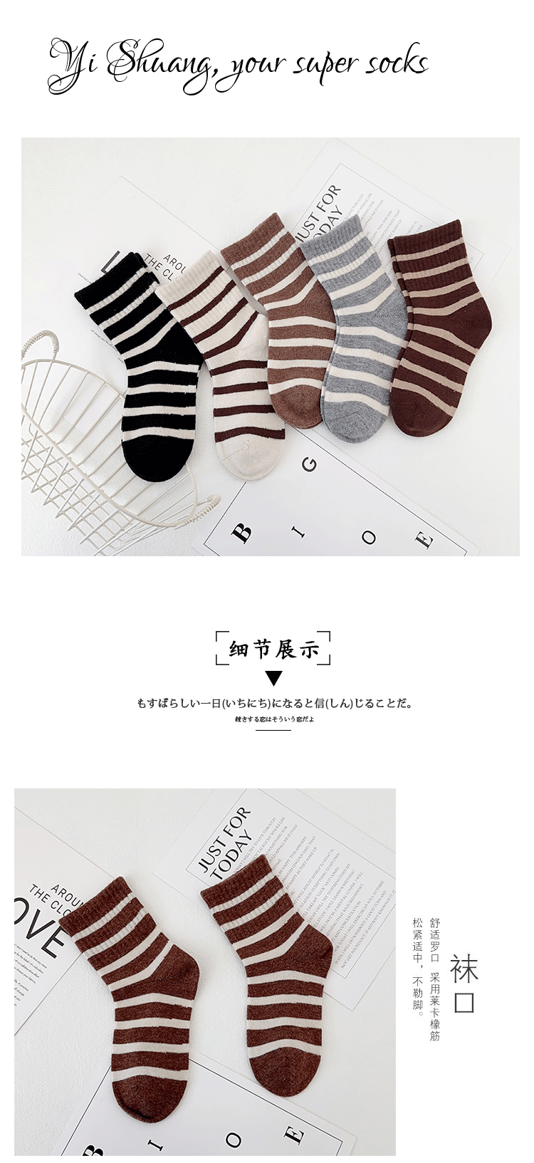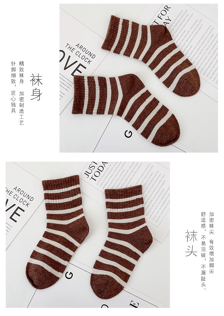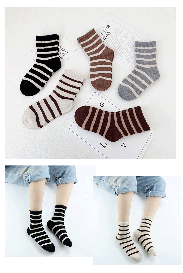 아이 양말의 이쌍 겨울 새로운 한국식 줄무늬 중견 양말 두꺼운 따뜻한 어린이 양말 따뜻한 벨벳 유행 양말스토어 가기