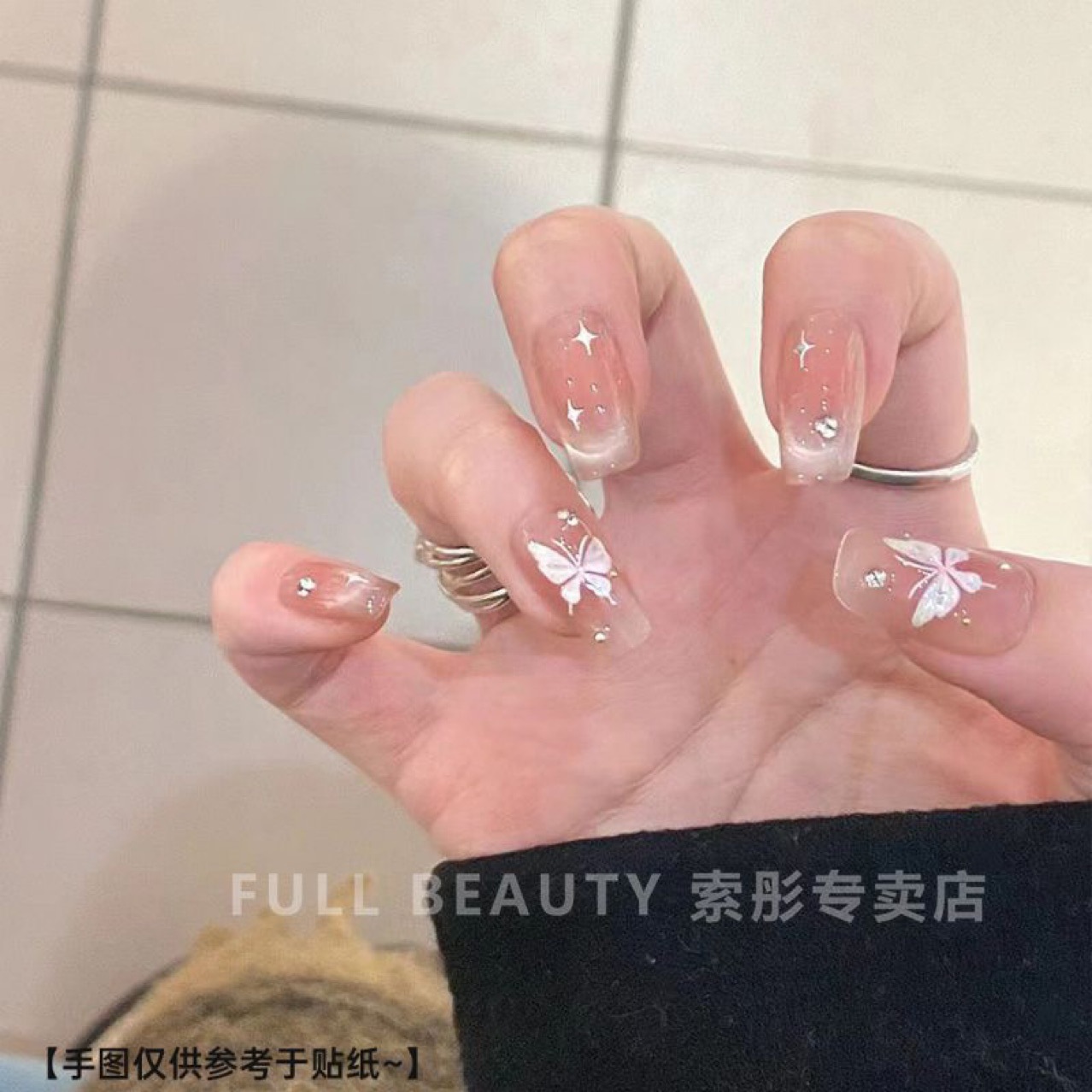 딸 느낌 얼음 크리스탈 오로라 나비 네일 아트 스티커 쉘 라이트 요정 작은 빨간 책 로맨틱 한 순수 스타일스토어 가기
