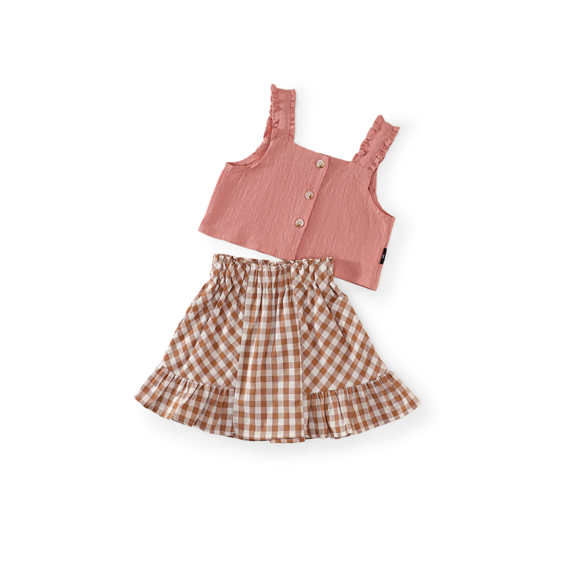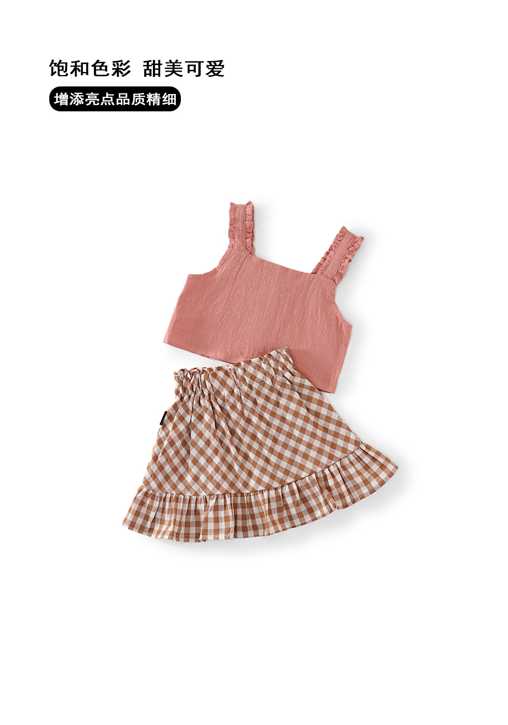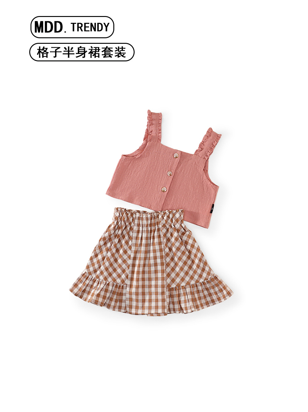 MDD 여자 세트 2025 여름 새로운 도착 한국 스타일 유행 민소매 스트랩 탑 격자 무늬 스커트 투피스 세트