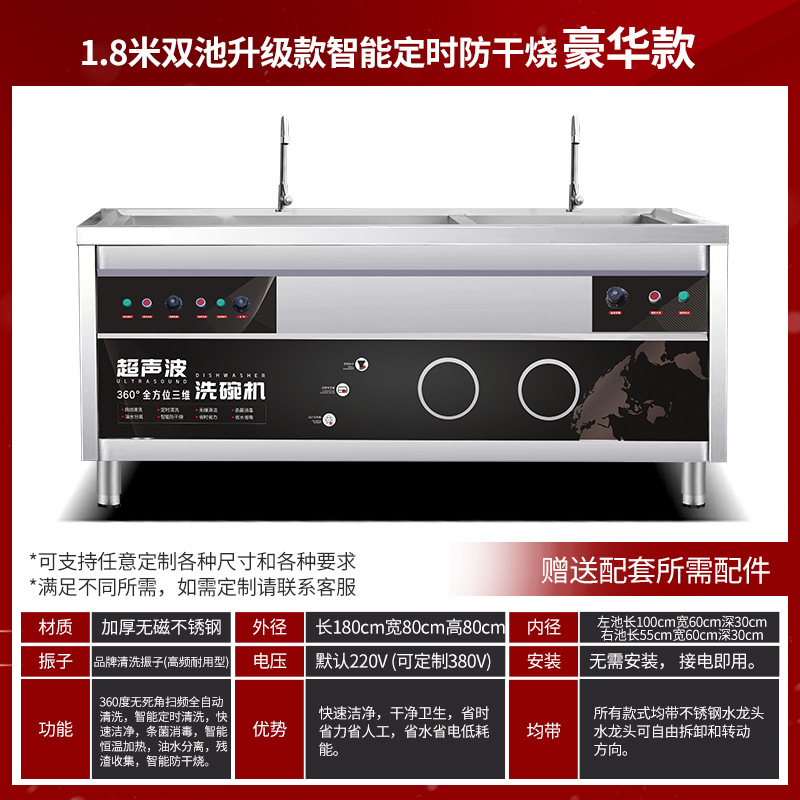 • 1.8m 설거지 및 야채 세척 일체형 기계 (초음파 + 오존 버블 + 서핑 청소)