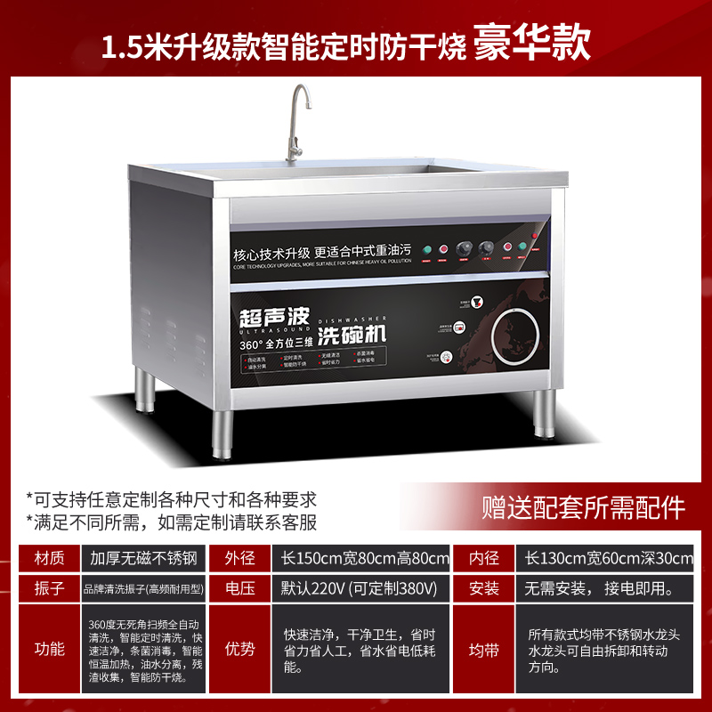 • 1.5m 설거지 및 야채 세척 일체형 기계 (초음파 + 오존 버블 + 서핑 청소)