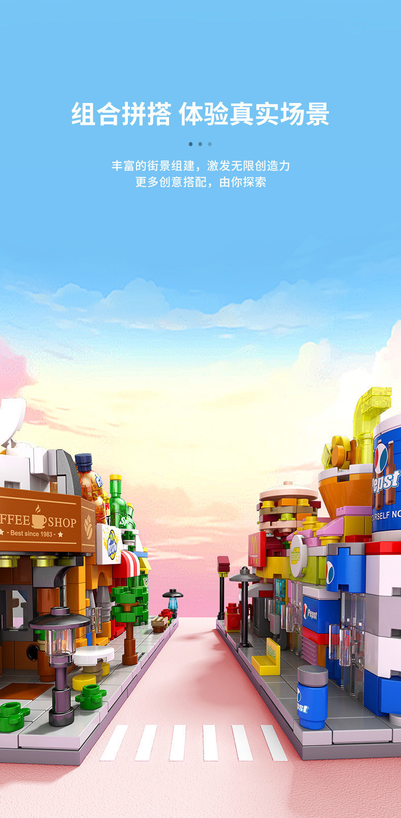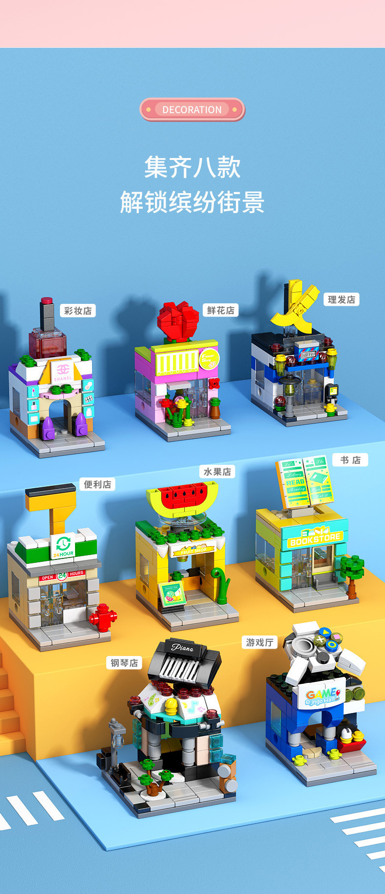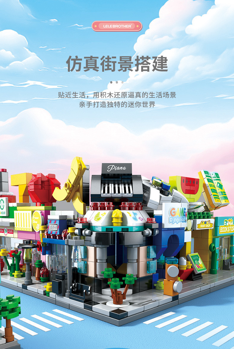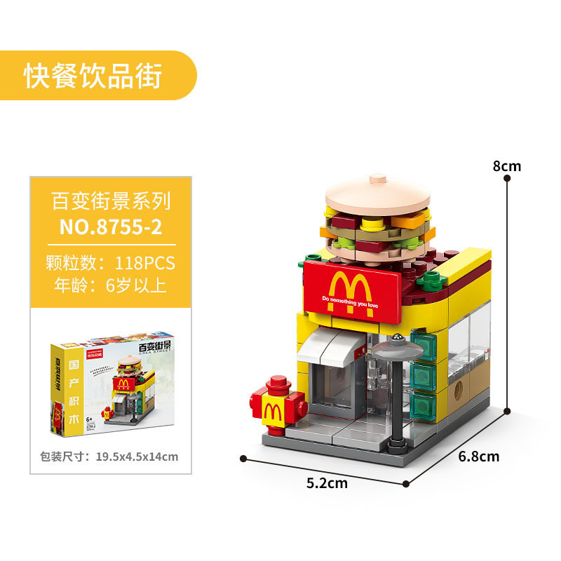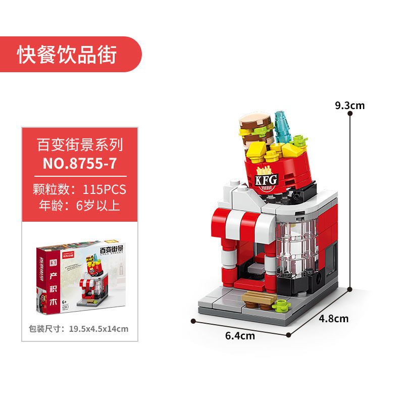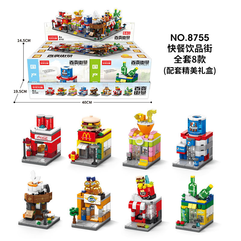 다양한 스트리트 뷰 빌딩 블록 작은 입자 조립 미니 시티 모델 장식품 교육 장난감 소년 소녀 조립 선물스토어 가기