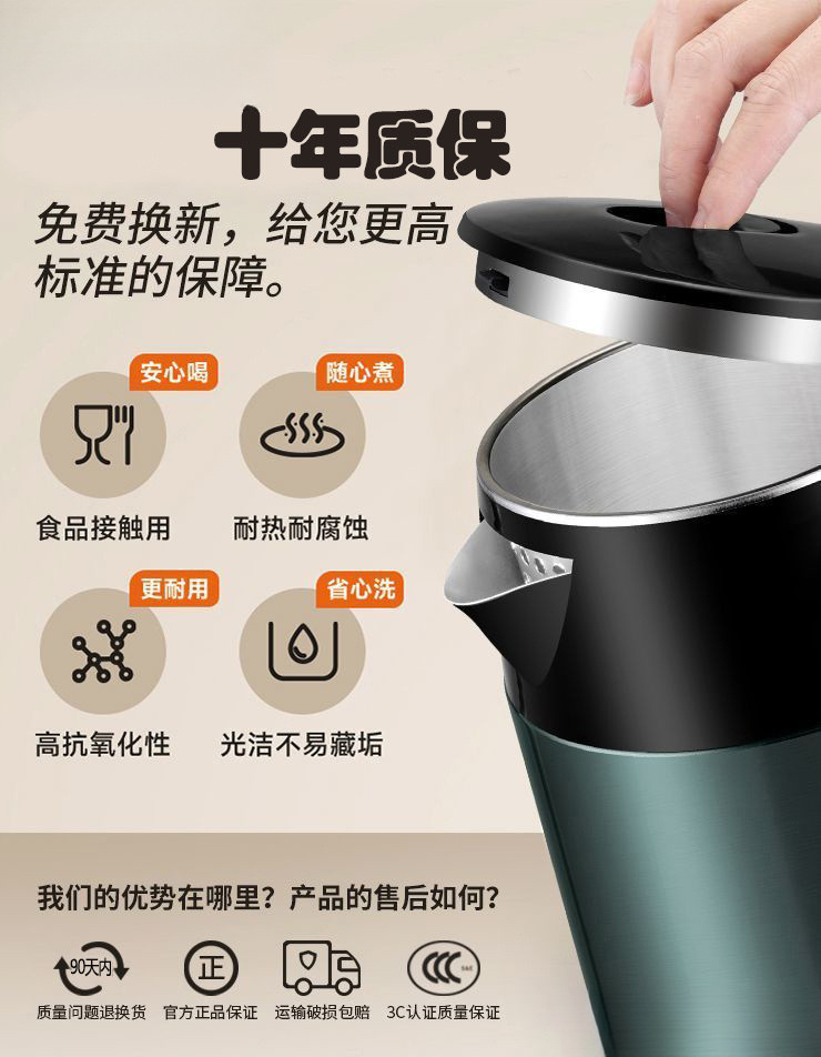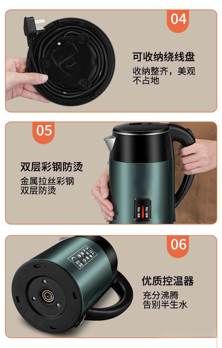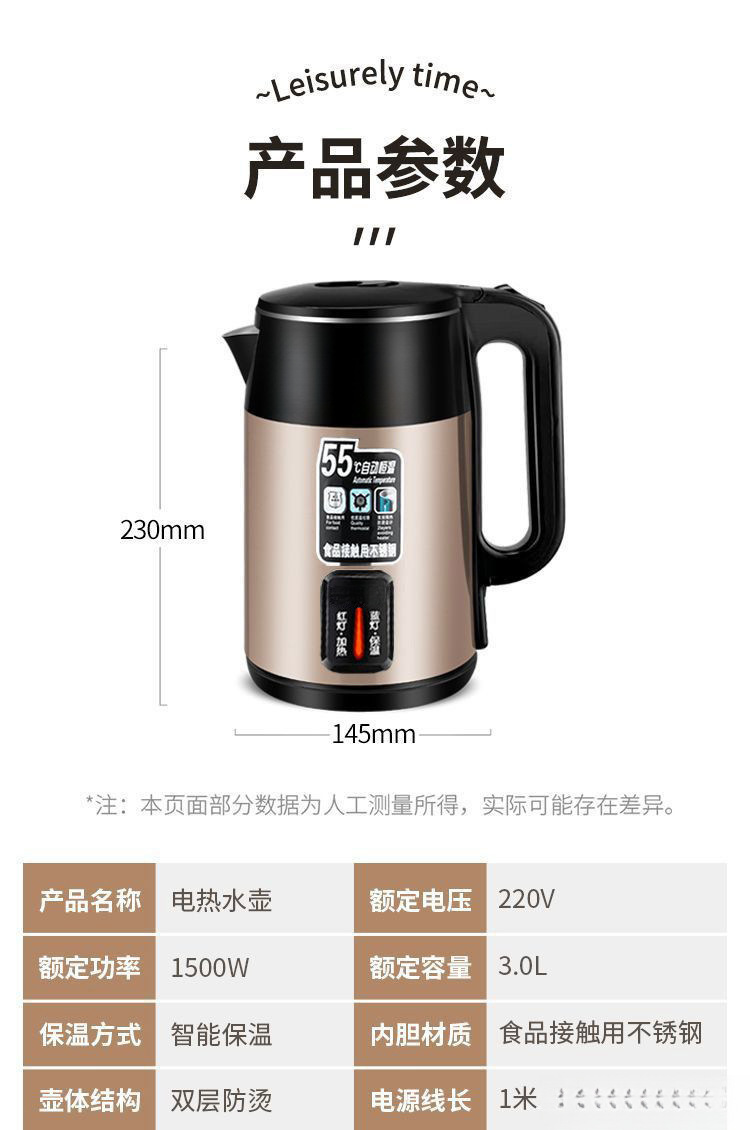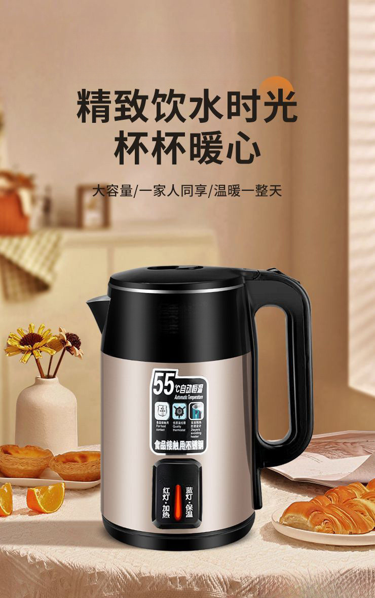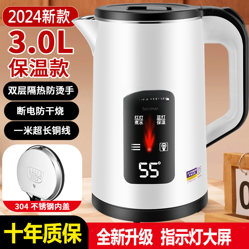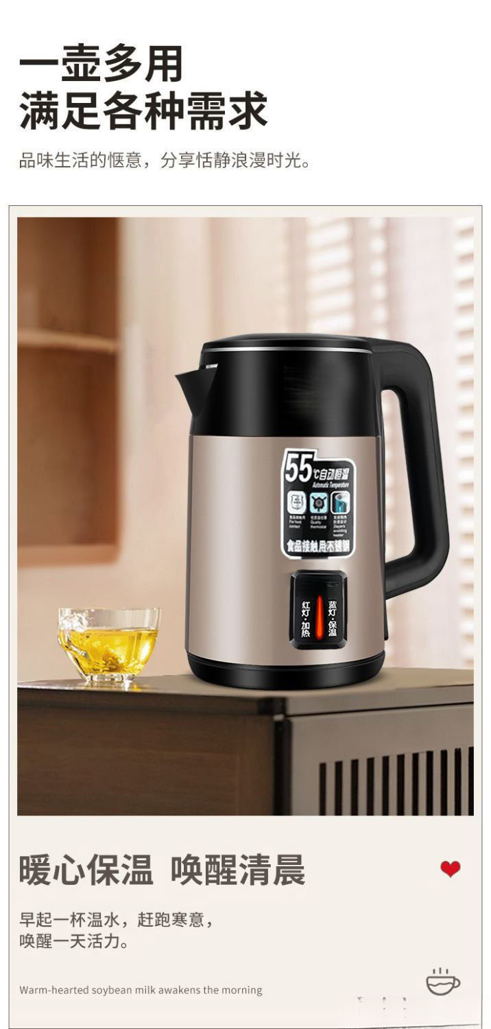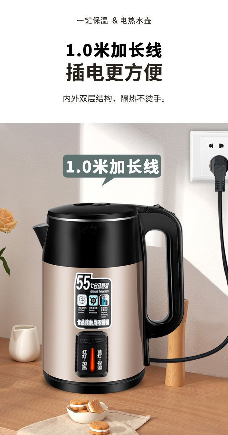 전기 주전자 더블 레이어 안티 스케일 가정용 내구성 지능형 열 보존 일정한 온도 빠른 끓는 주전자 빠른 난방