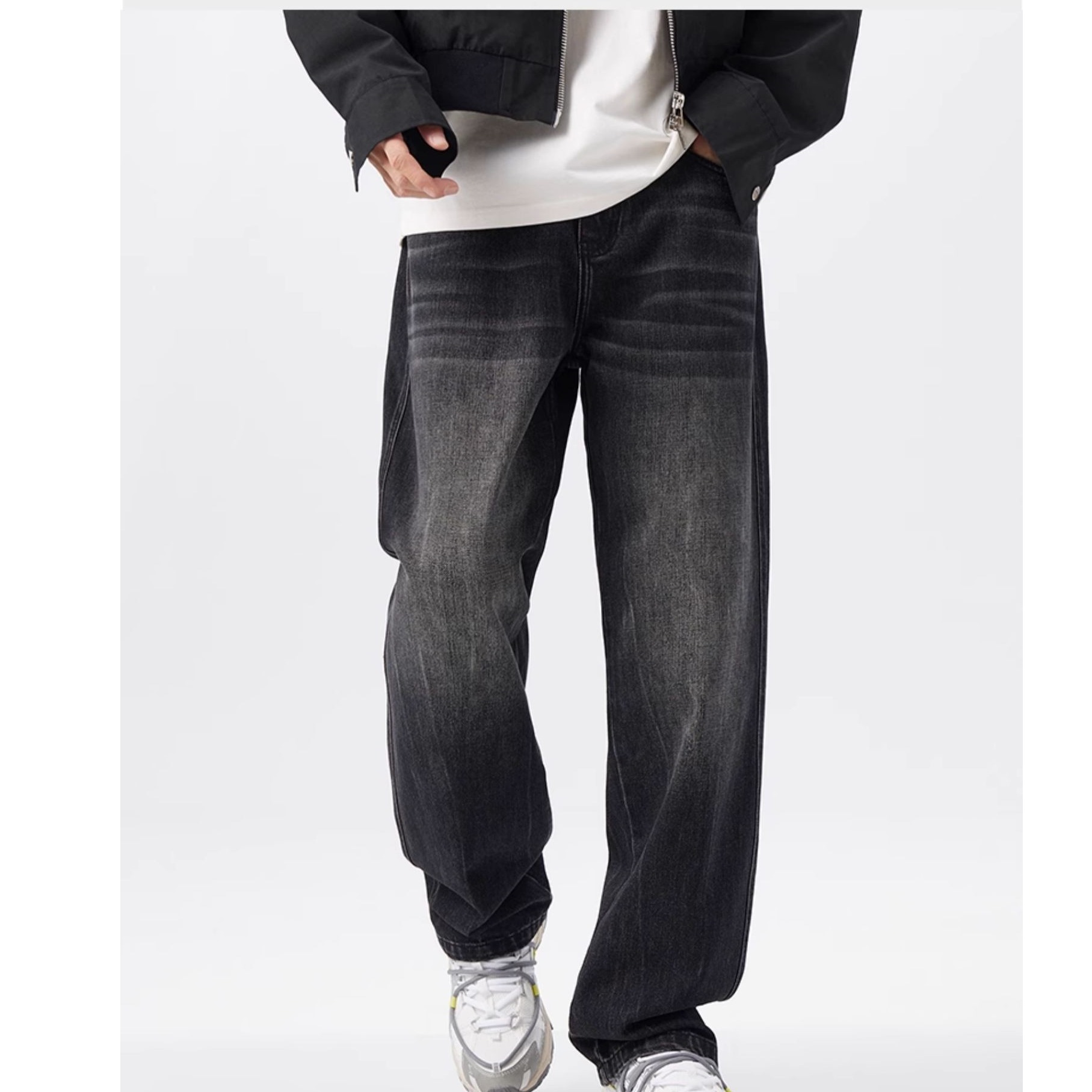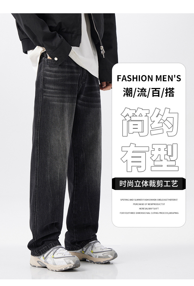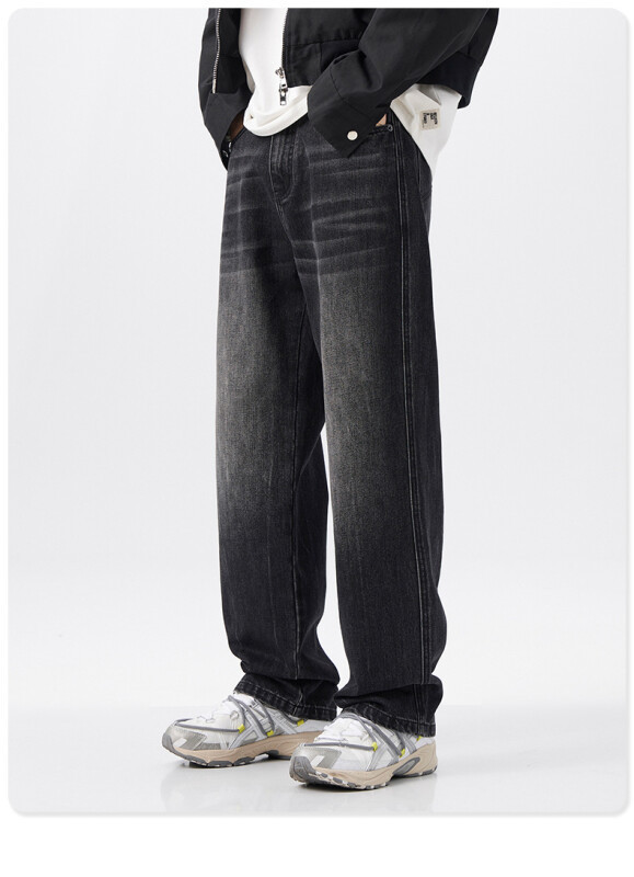 2024 가을과 겨울 하이 스트리트 두꺼운 미국 스타일 빈티지 세탁 청바지 남자 올 매치 딥 루즈 스트레이트 캐주얼 바지