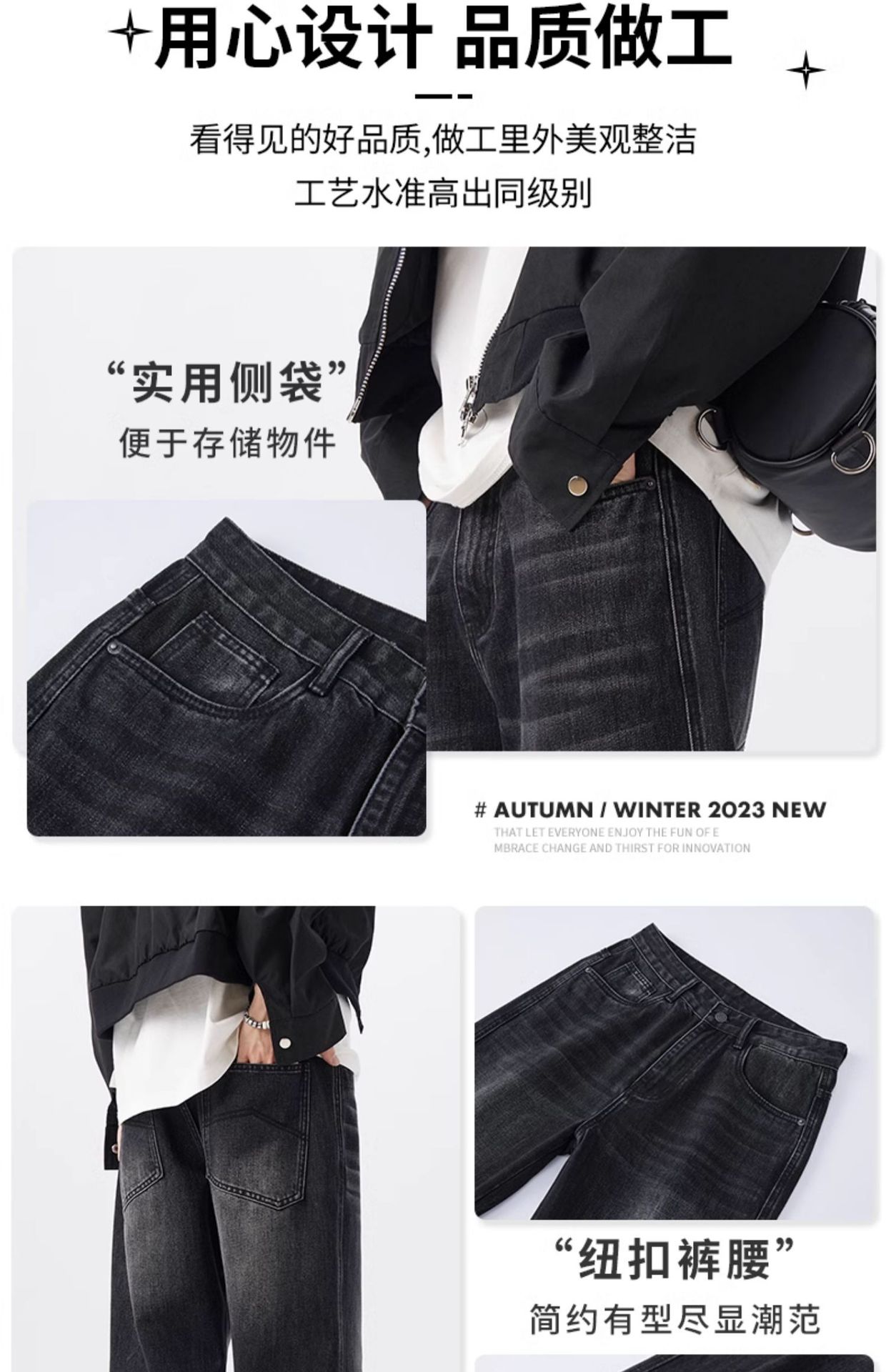 2024 가을과 겨울 하이 스트리트 두꺼운 미국 스타일 빈티지 세탁 청바지 남자 올 매치 딥 루즈 스트레이트 캐주얼 바지스토어 가기