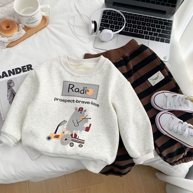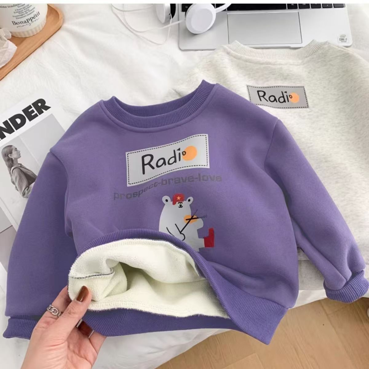 2024 새로운 소년 기모 스웨터 가을과 겨울 의류 어린이 만화 외국 스타일 풀오버 어린이 원피스 벨벳 탑