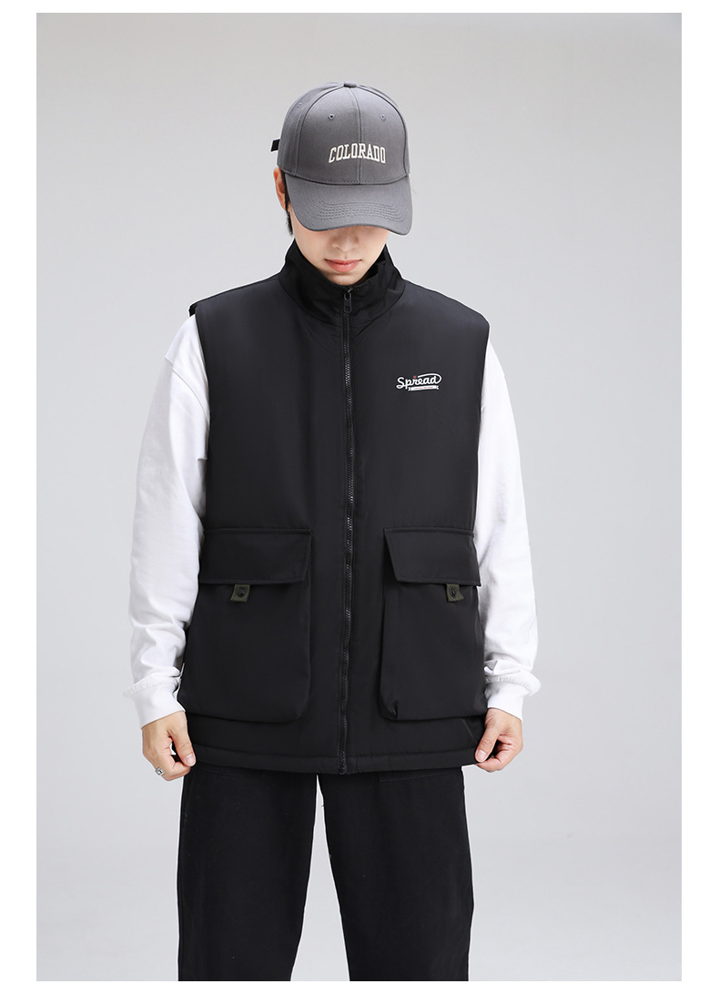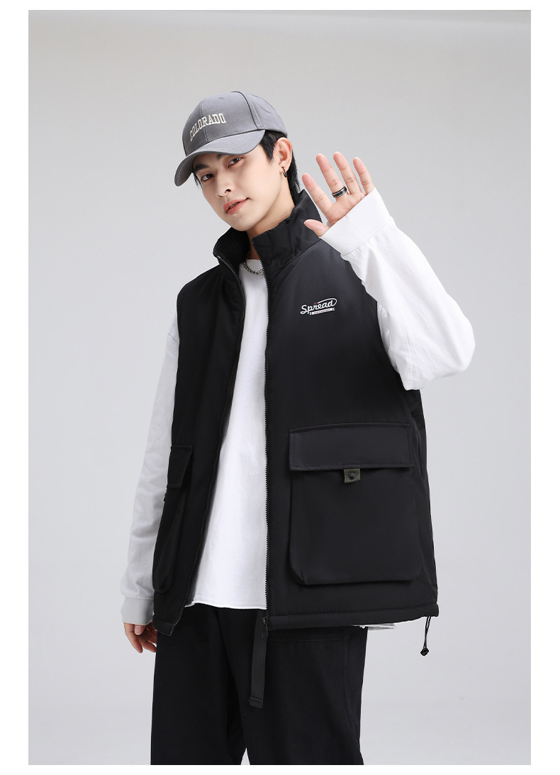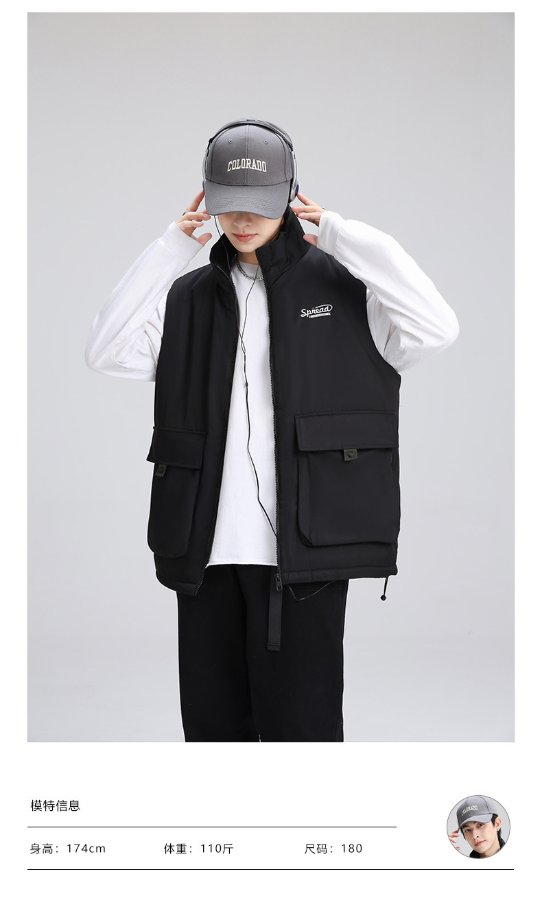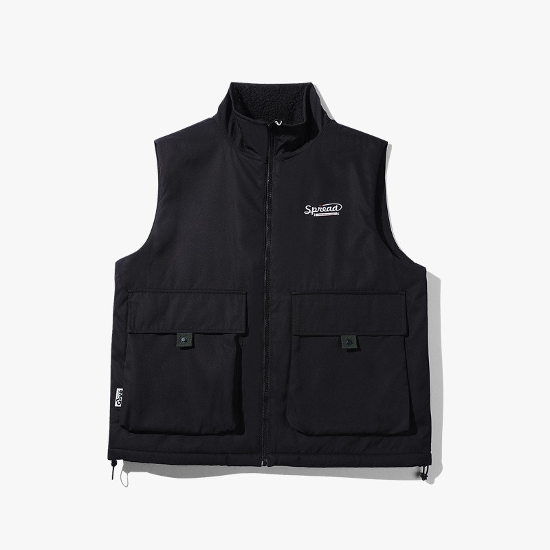 양고기 양털 조끼 한국식 면 패딩 재킷 빅 보이 조끼 겨울 새로운 멀티 백 스탠드 칼라 기모 툴링 재킷스토어 가기