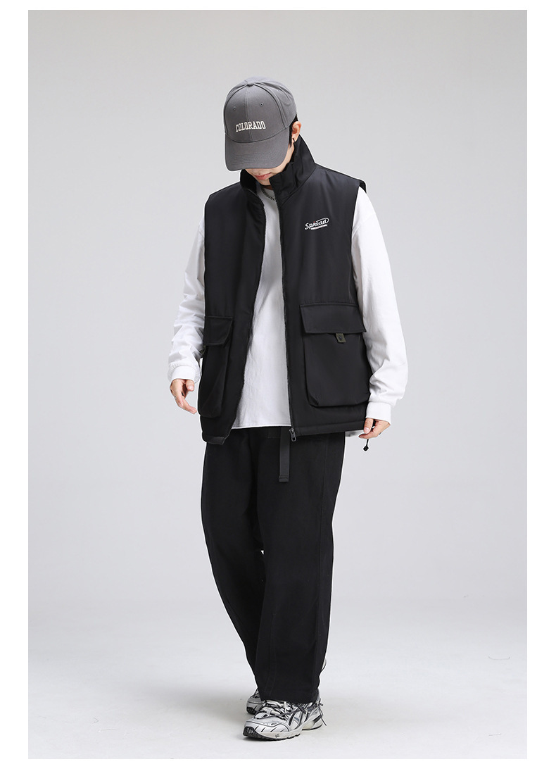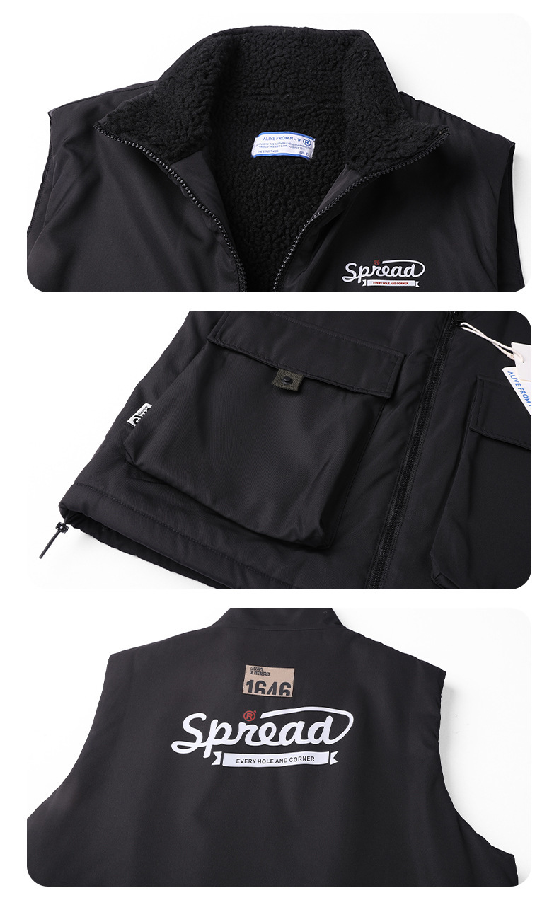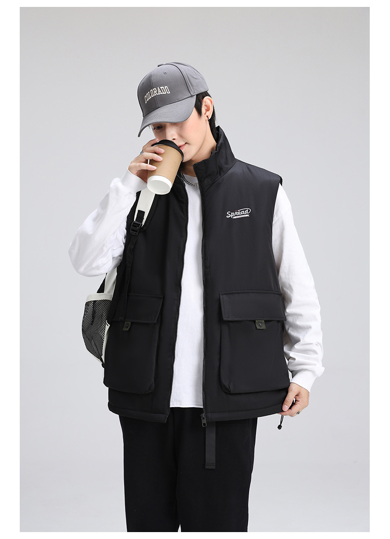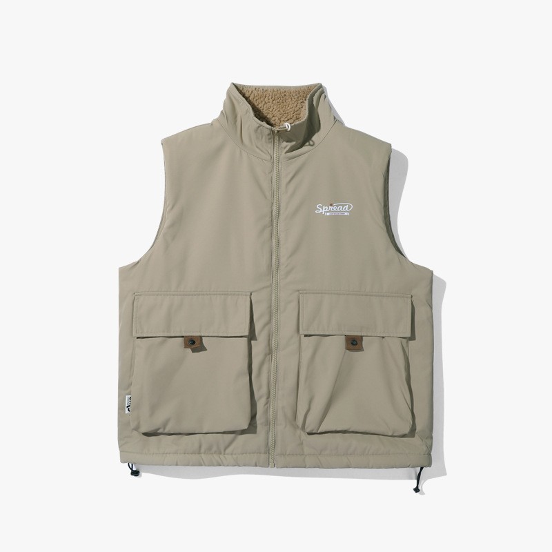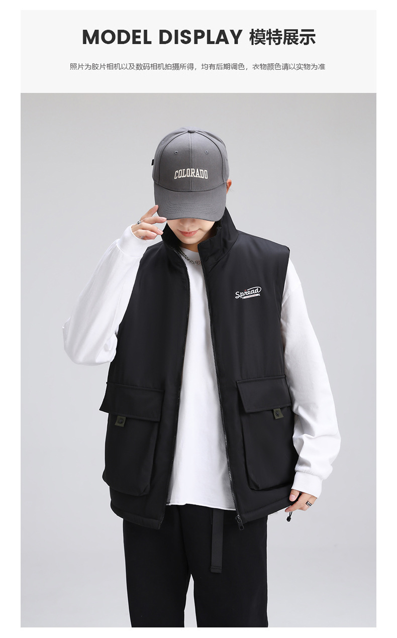 양고기 양털 조끼 한국식 면 패딩 재킷 빅 보이 조끼 겨울 새로운 멀티 백 스탠드 칼라 기모 툴링 재킷스토어 가기