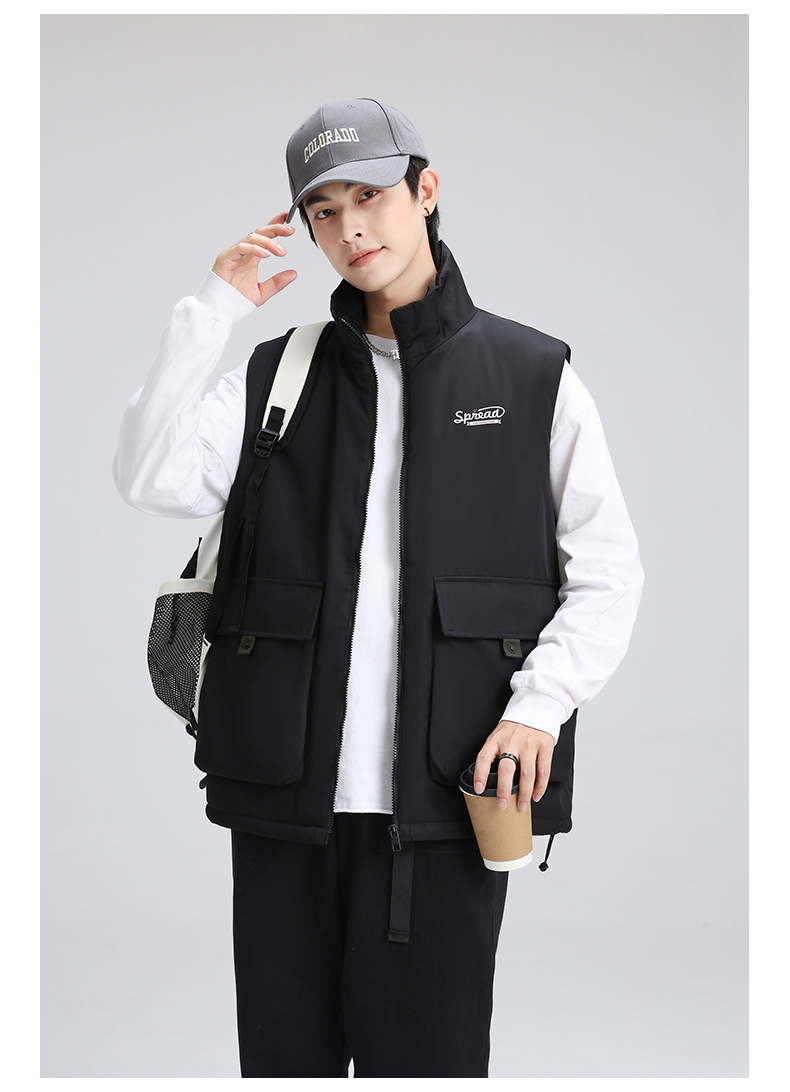 양고기 양털 조끼 한국식 면 패딩 재킷 빅 보이 조끼 겨울 새로운 멀티 백 스탠드 칼라 기모 툴링 재킷