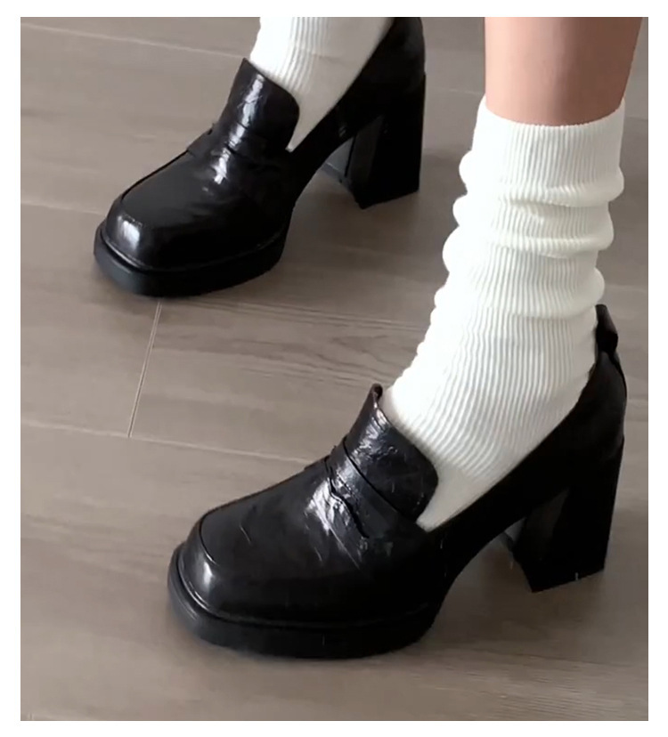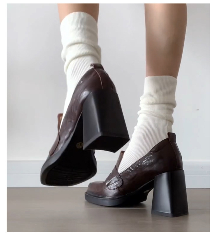빈티지 하이힐 메리 제인 싱글 레이어 신발 여성용 딥 컷 코어스 힐 로퍼 영국 두꺼운 사각형 발가락 작은 가죽 신발스토어 가기