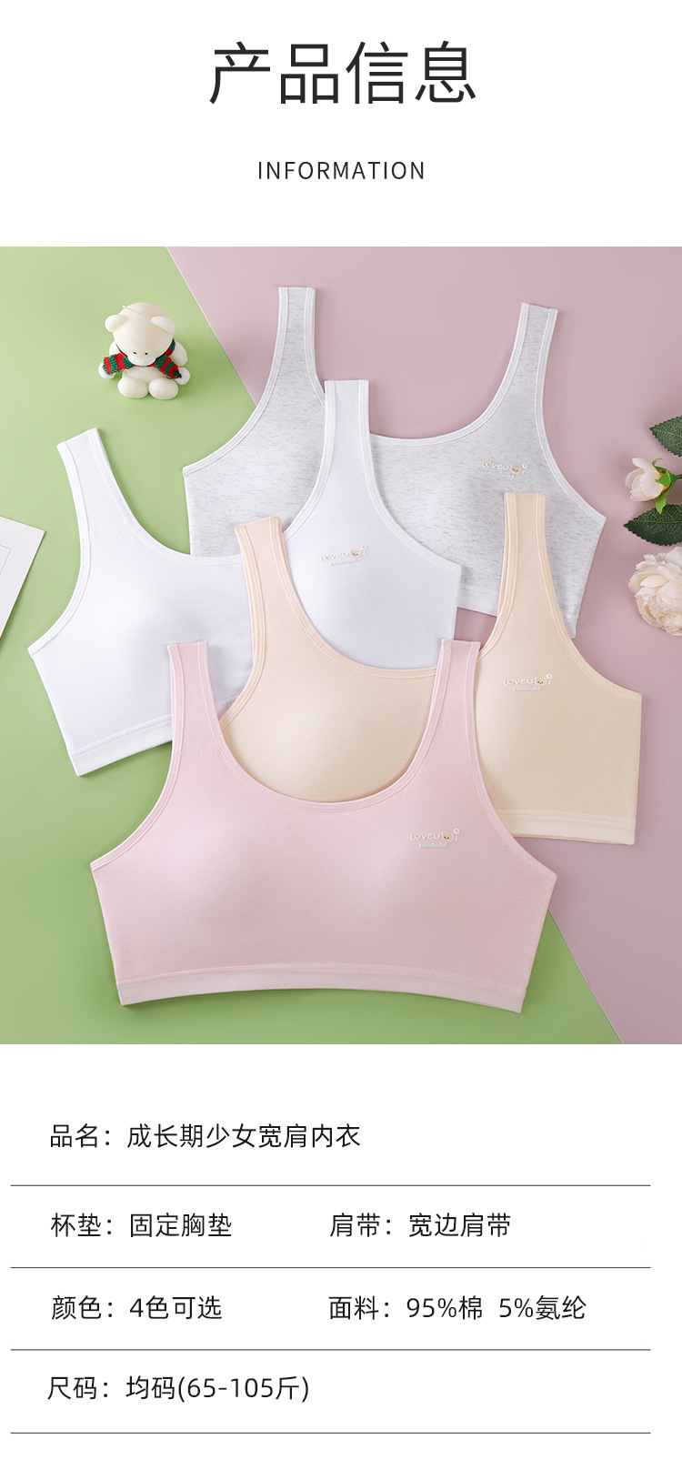 면 여자 속옷 개발 기간 고정컵 작은 조끼 통기성 메시 여중학생 얇은 브래지어