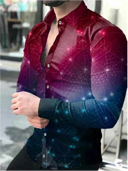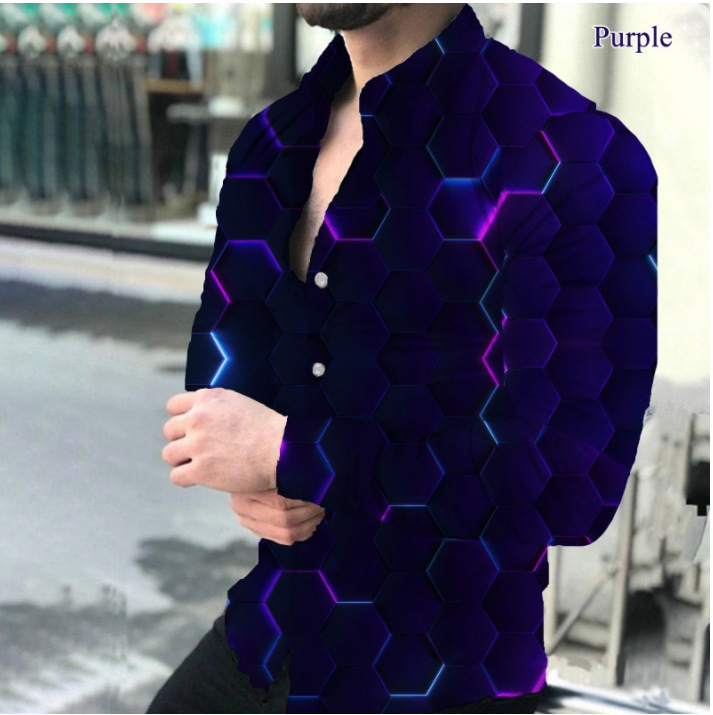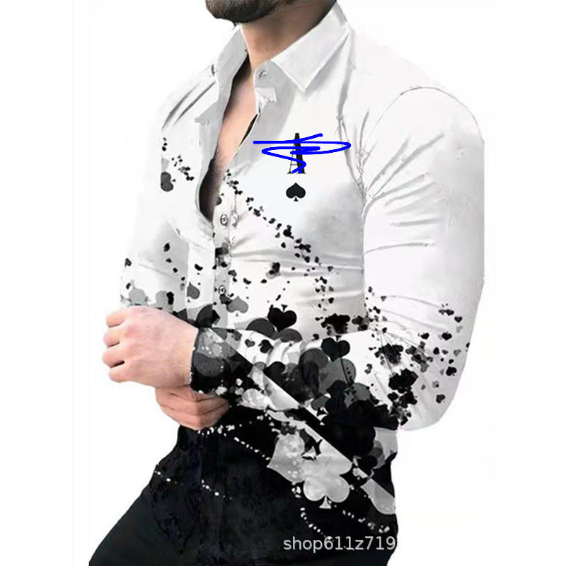 2024 대외 무역 유럽과 미국 남성의 봄과 가을 새로운 캐주얼 트렌디 남성 긴 소매 3D 디지털 인쇄 셔츠 플러스 사이즈 셔츠스토어 가기