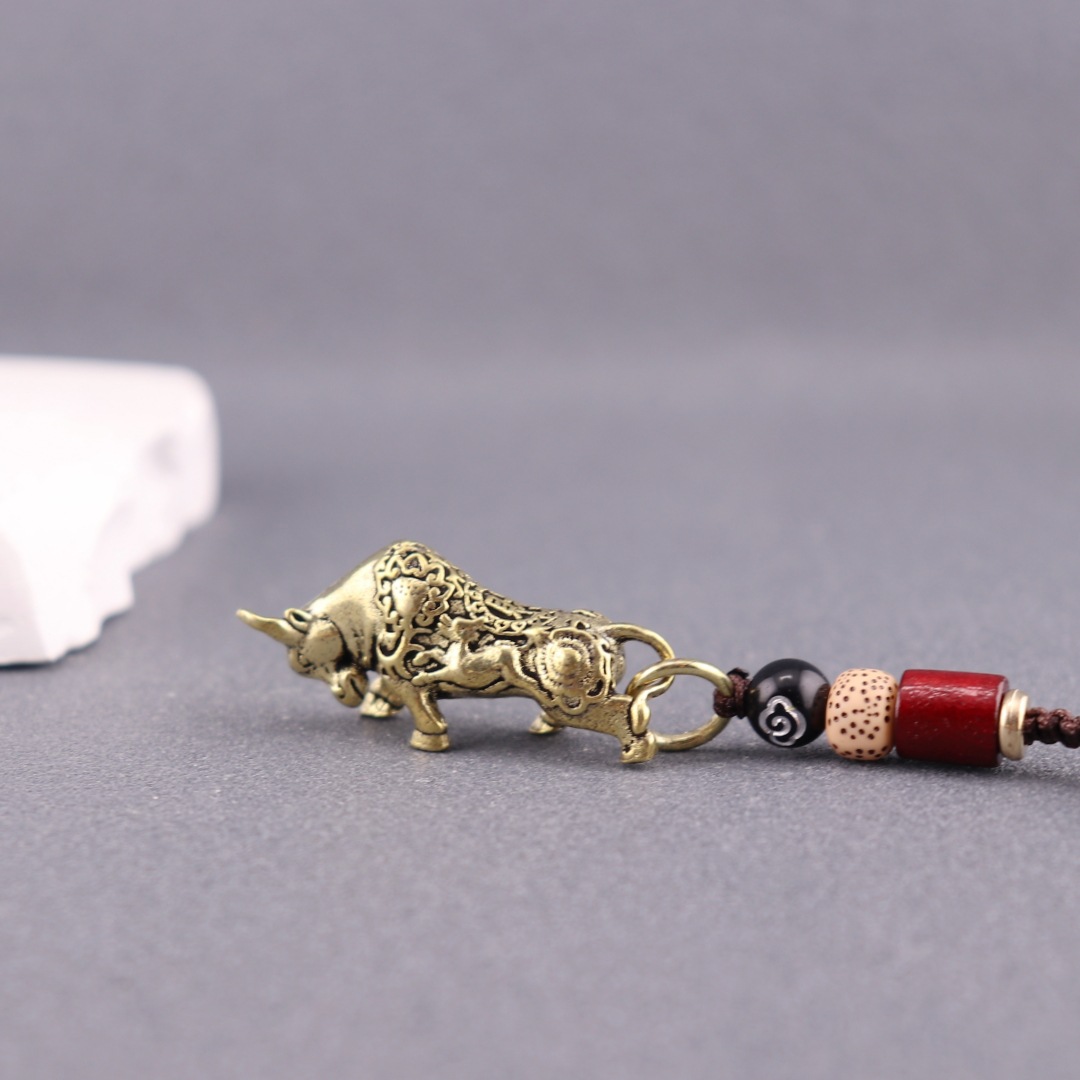 창조적 인 황동 조디악 포춘 소 자동차 키 체인 펜던트 복고풍 오래된 황소 하늘 펜던트 액세서리 도매