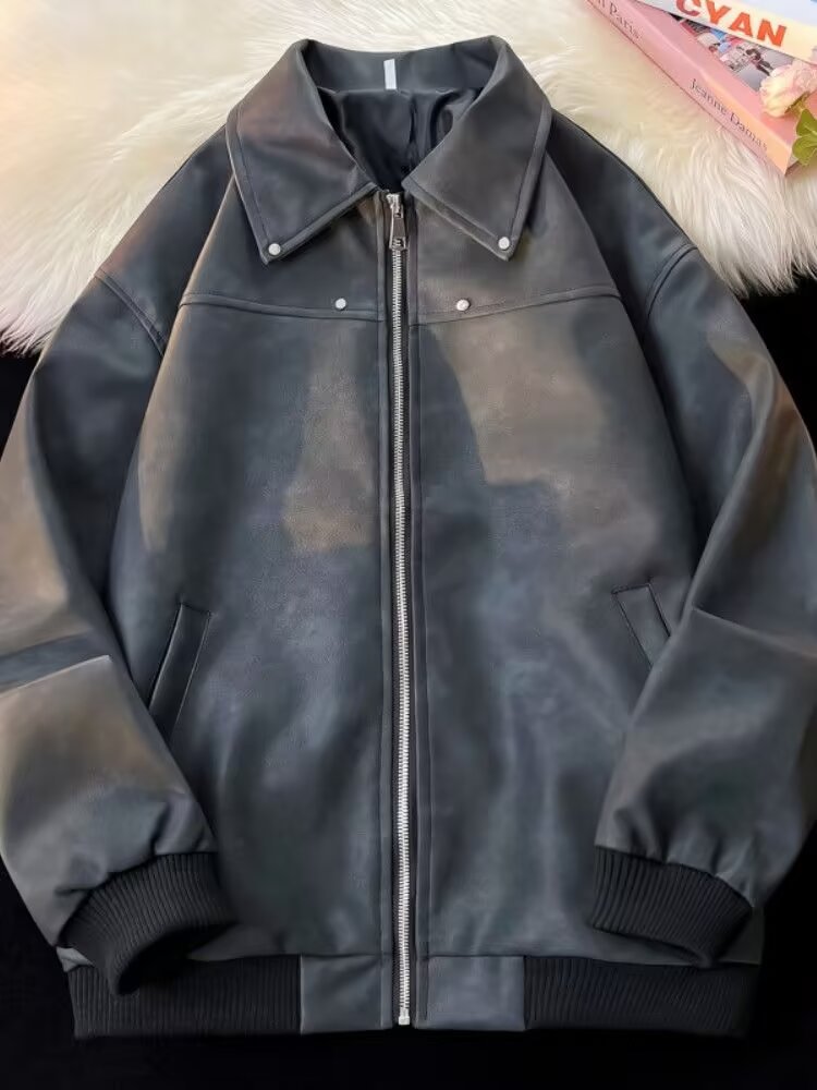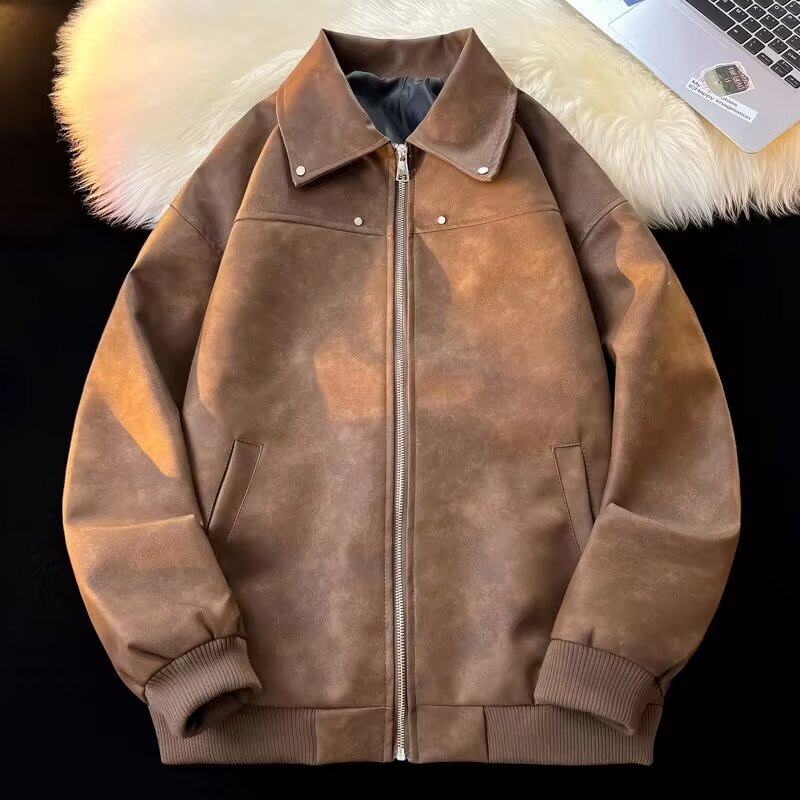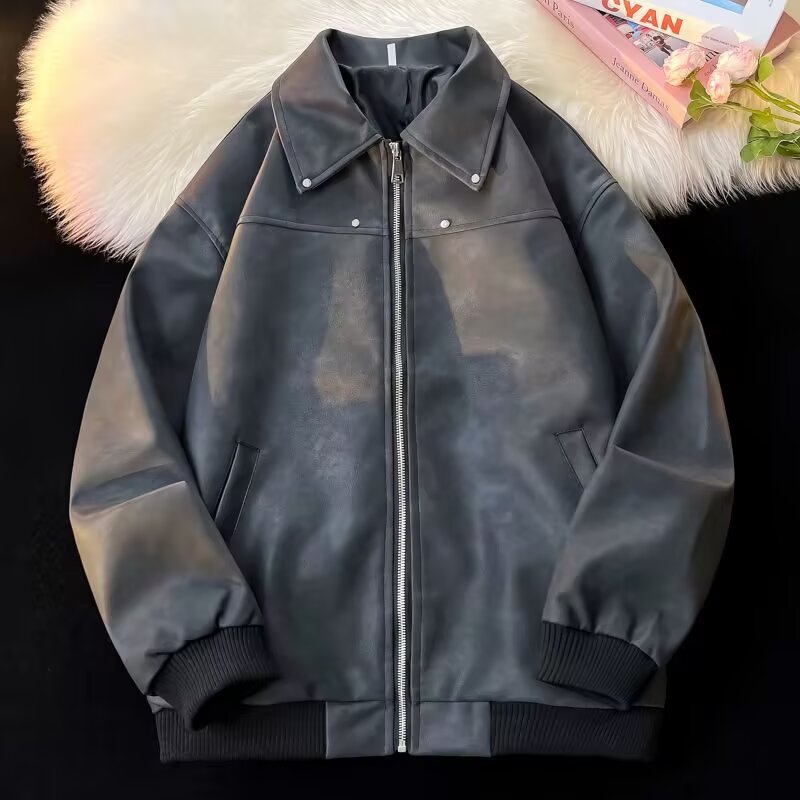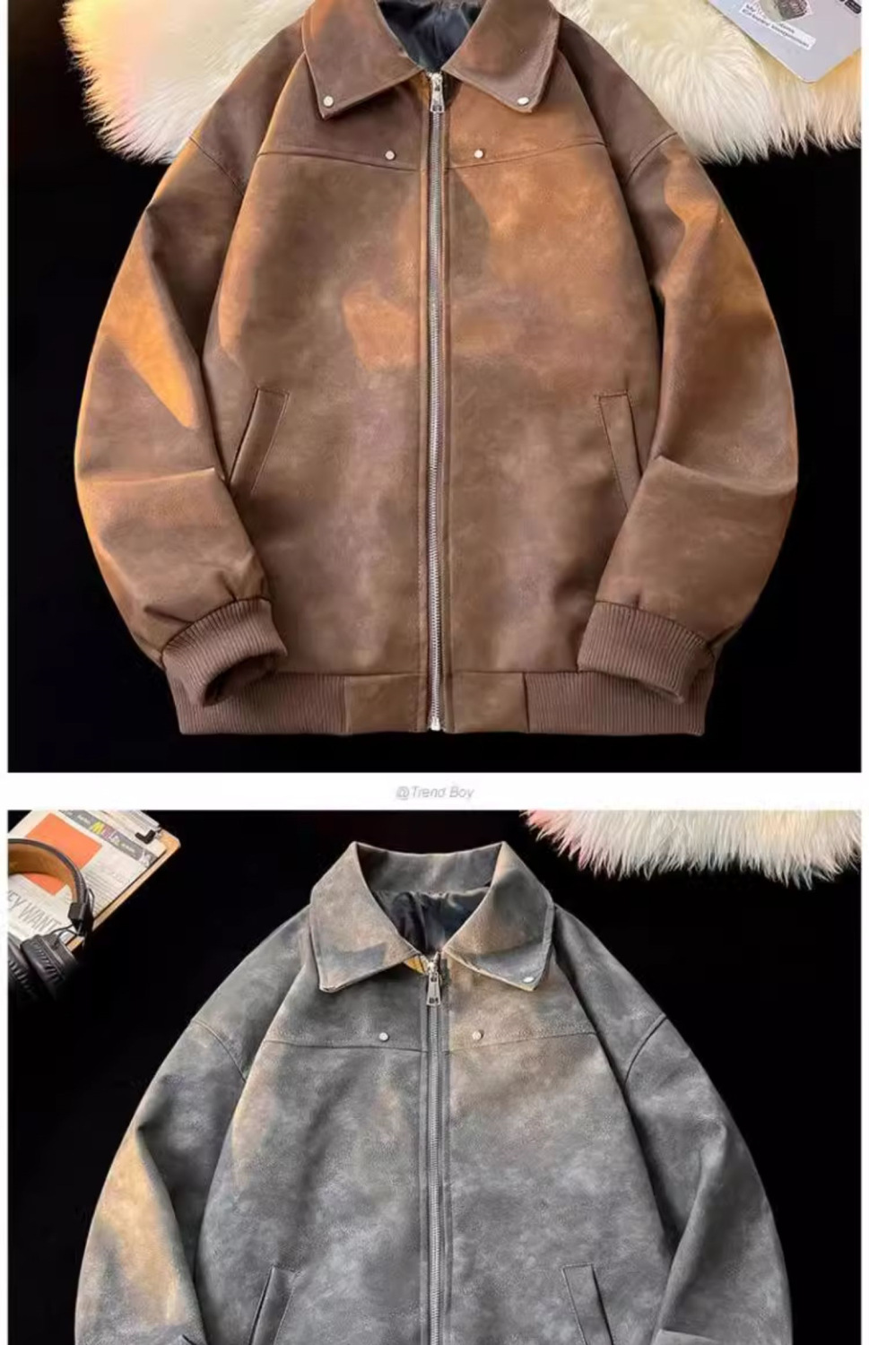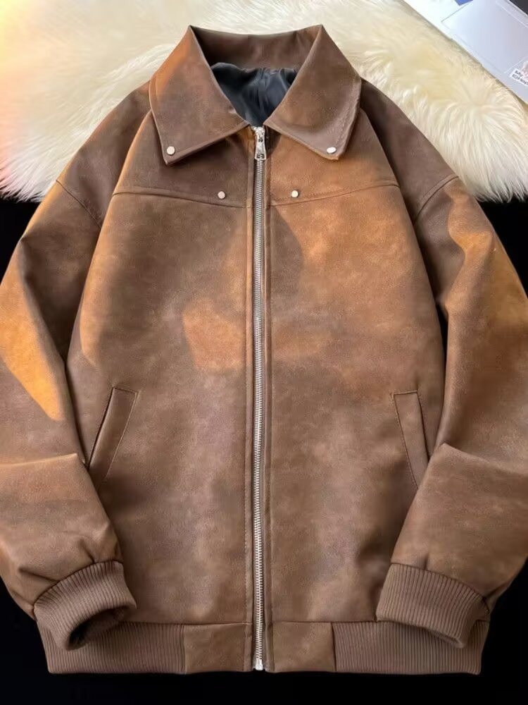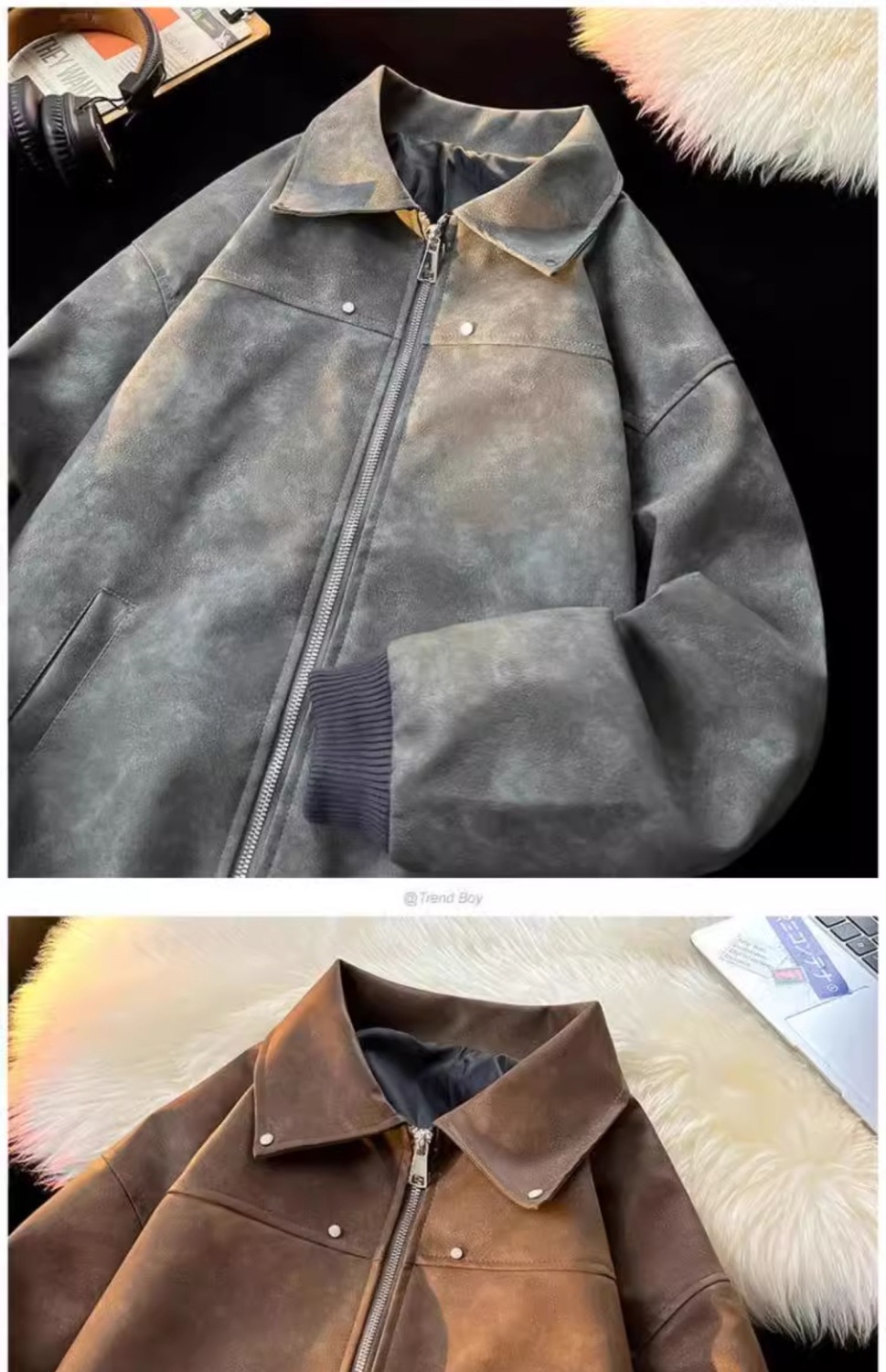 Wukong 재고 미국 하이 스트리트 Maillard 다크 브라운 가죽 재킷 남성용 복고풍 클렌징 트렌디 한 재킷