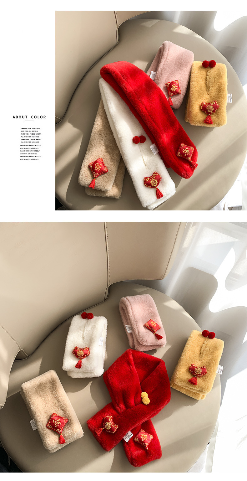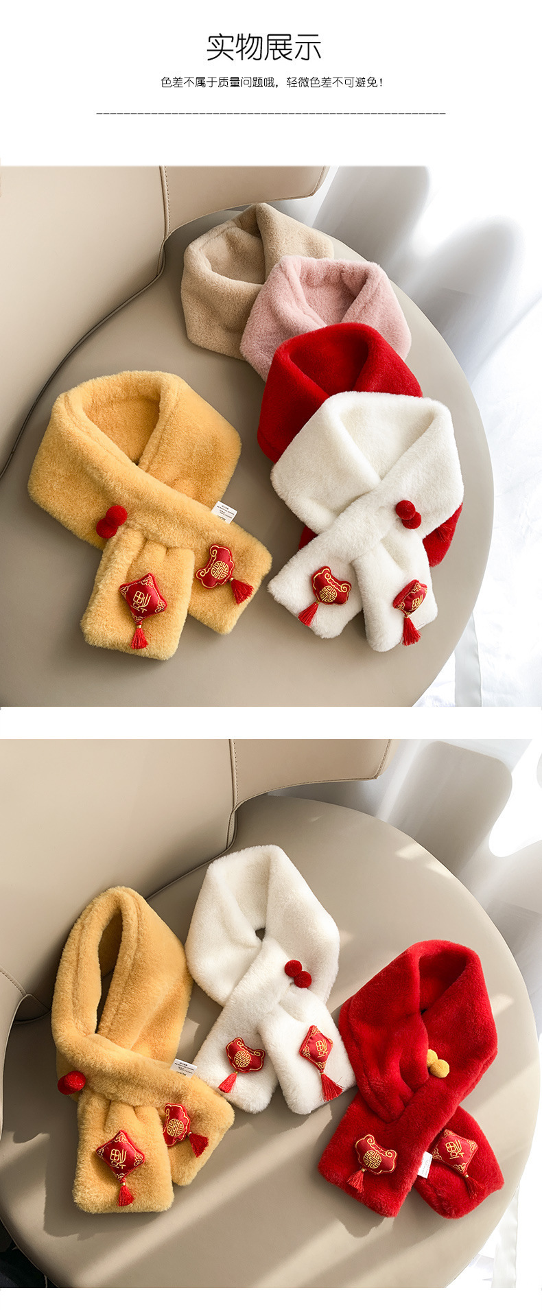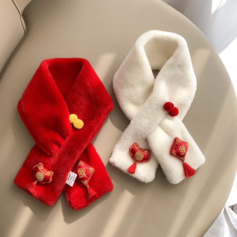 2025 새로운 어린이 스카프 가을과 겨울 봉제 새해 크리스마스 귀여운 두꺼운 만화 모방 토끼 모피 아기 스카프스토어 가기