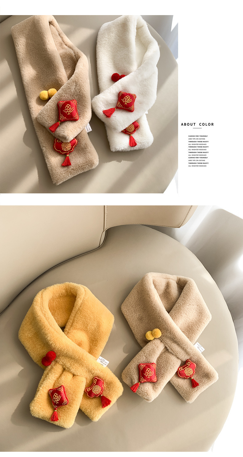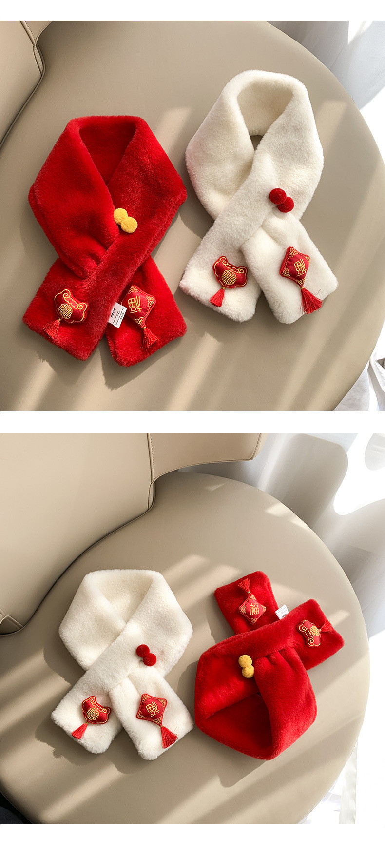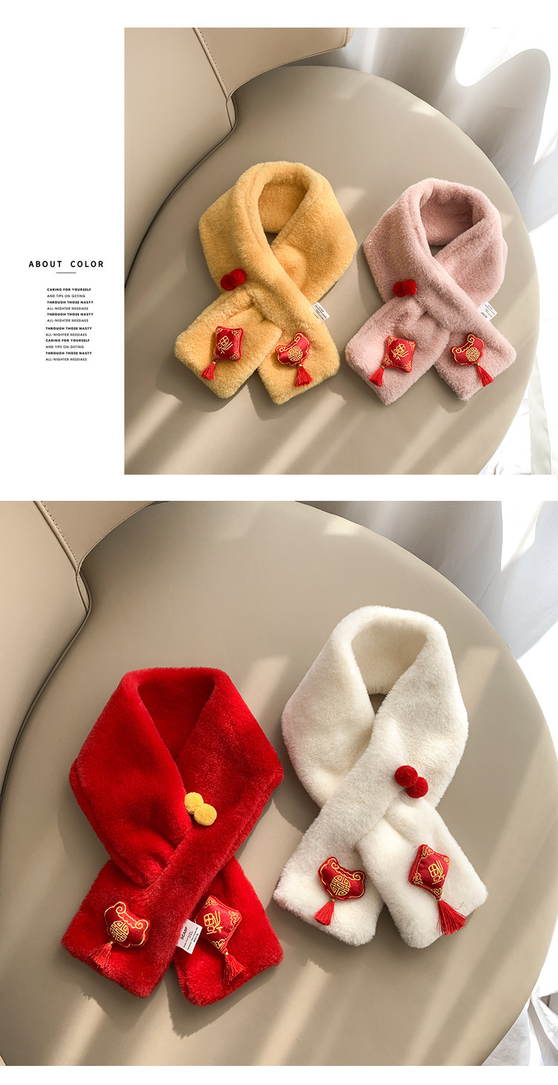 2025 새로운 어린이 스카프 가을과 겨울 봉제 새해 크리스마스 귀여운 두꺼운 만화 모방 토끼 모피 아기 스카프스토어 가기