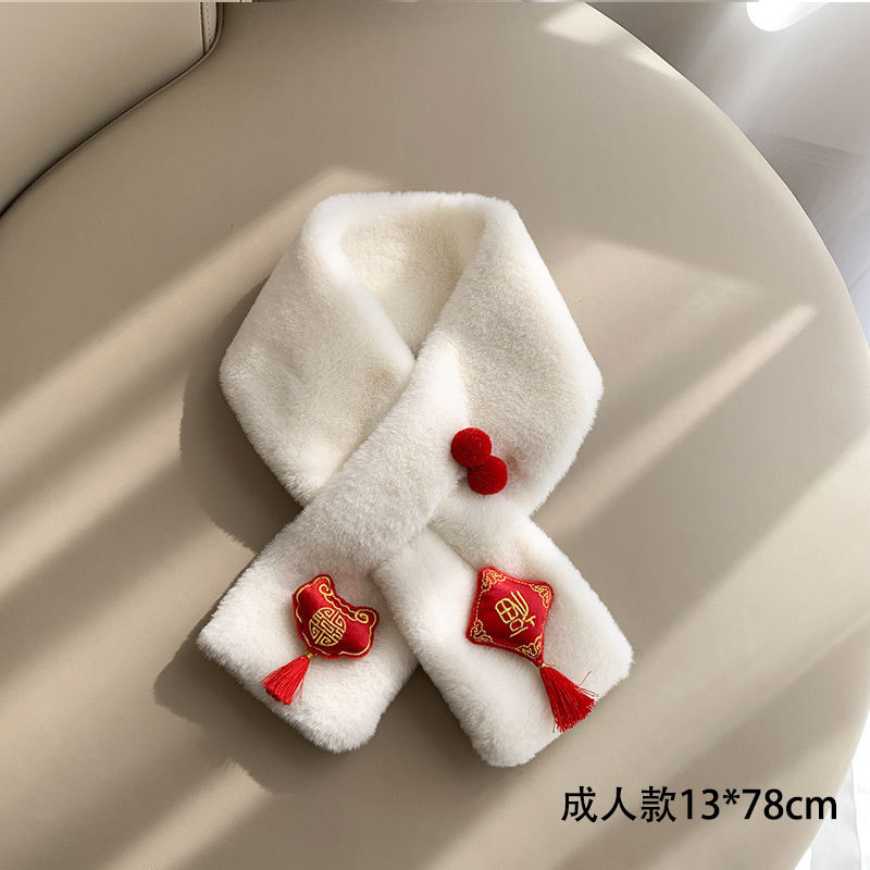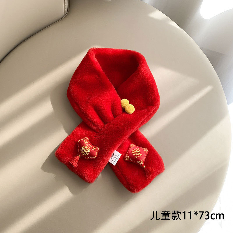 2025 새로운 어린이 스카프 가을과 겨울 봉제 새해 크리스마스 귀여운 두꺼운 만화 모방 토끼 모피 아기 스카프