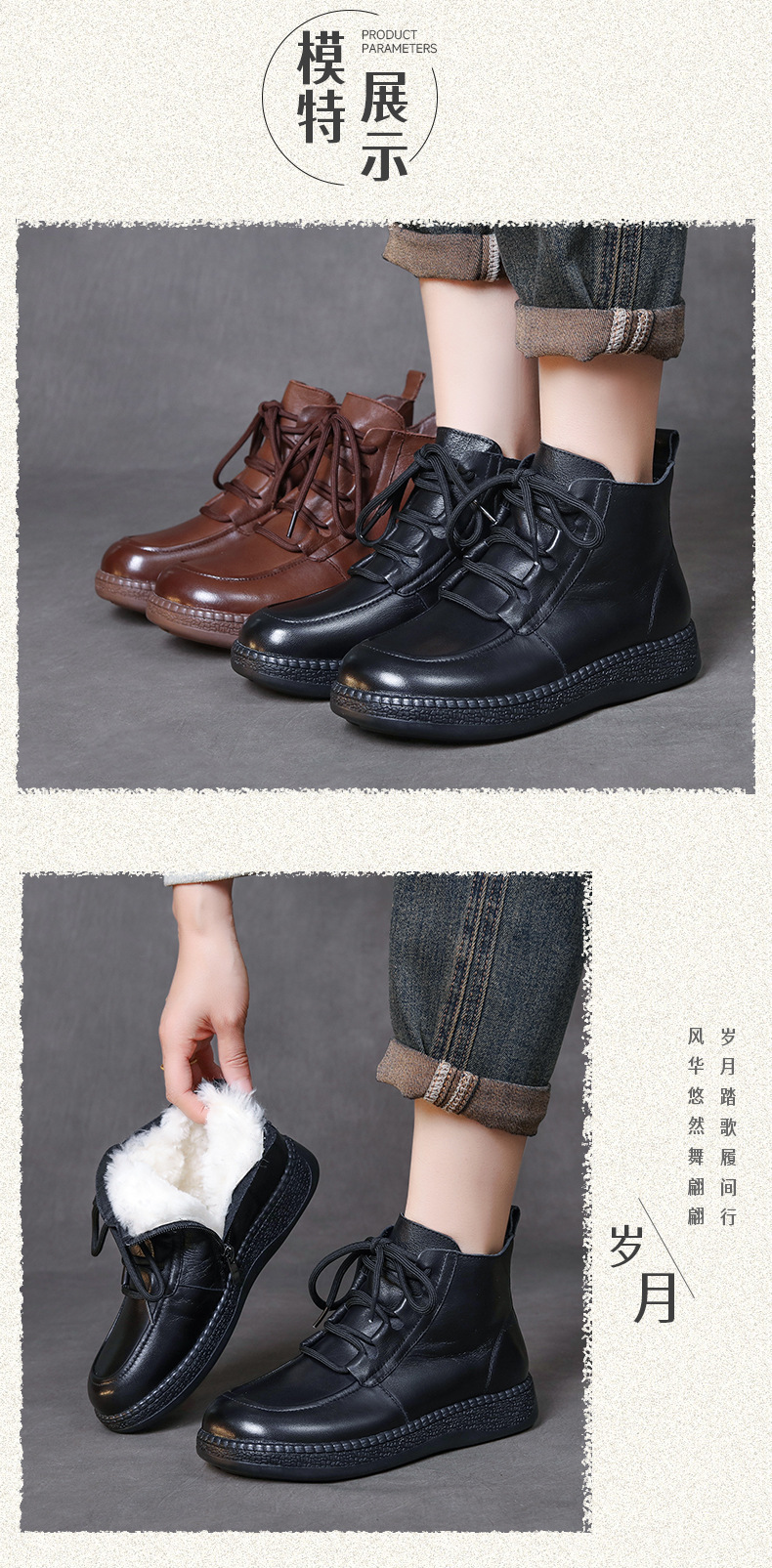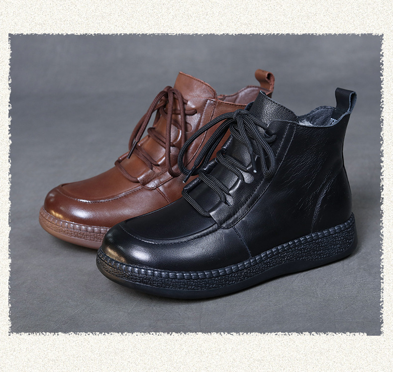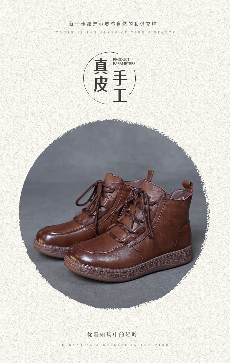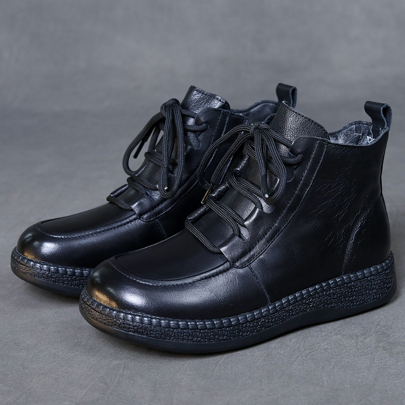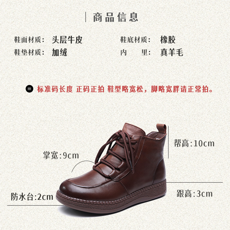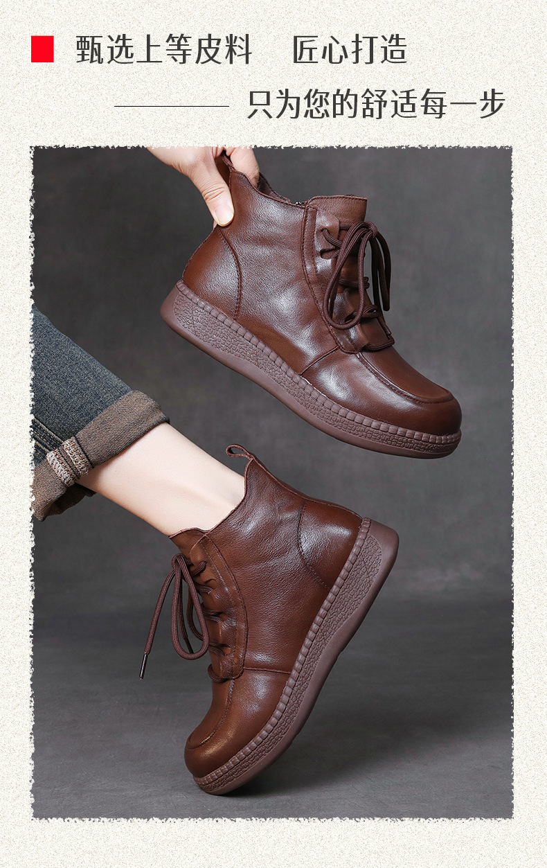 탑 레이어 소 가죽 빈티지 울 짧은 부츠 여성의 2024 겨울 새로운 라운드 헤드 프론트 레이스 업 마틴 부츠 기모 코튼 부츠스토어 가기