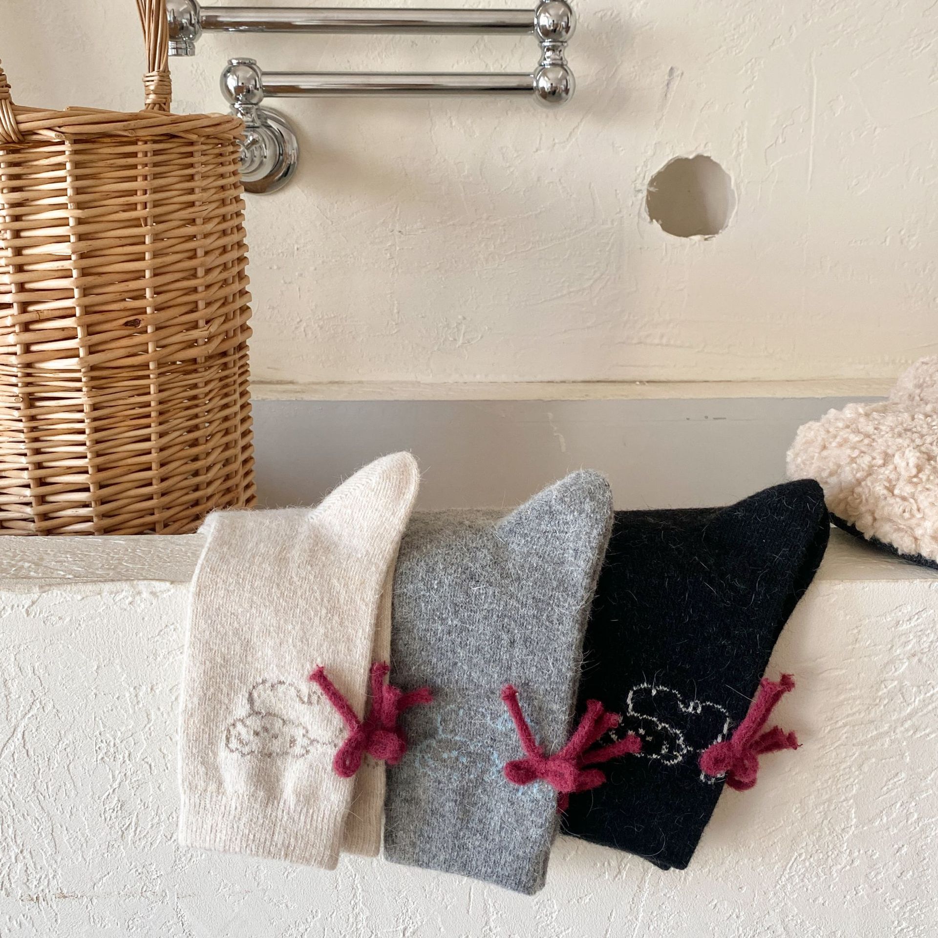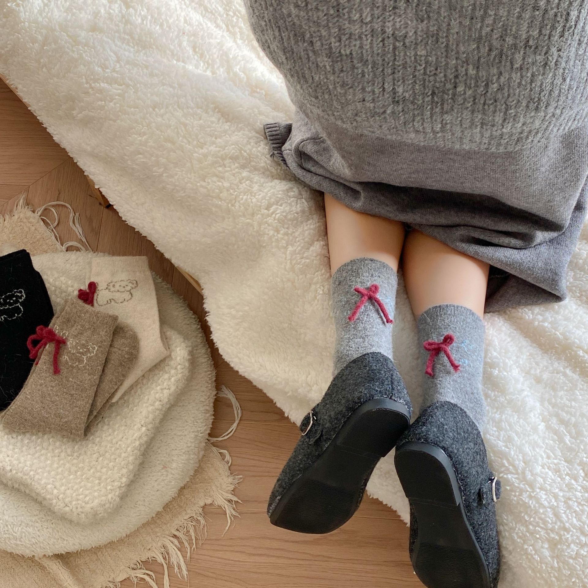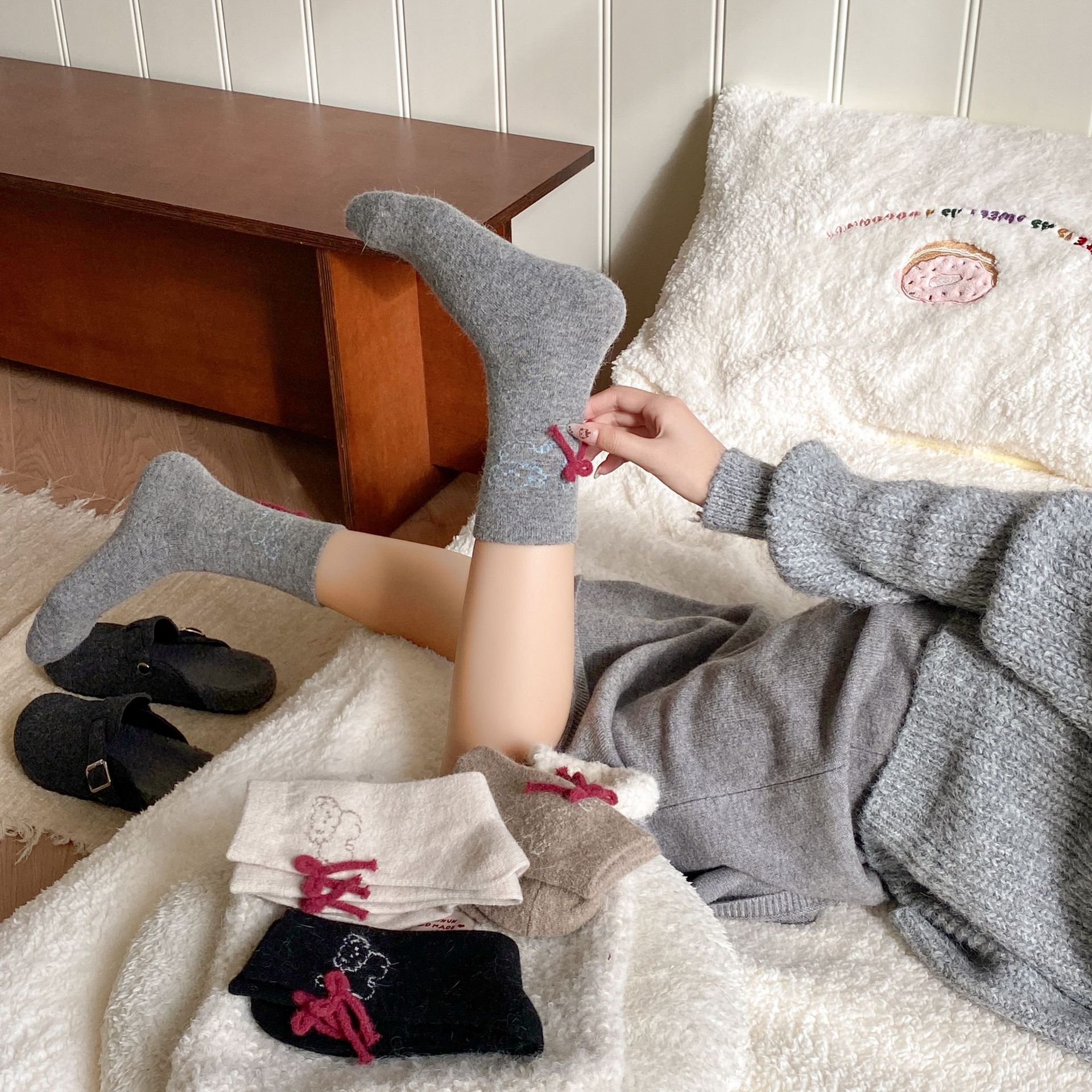 양모 강아지+리본 겨울 양말 여성용 매우 귀엽고 따뜻한 한국 스타일 인스 스타일 중간 길이 양말 여성용 양말스토어 가기