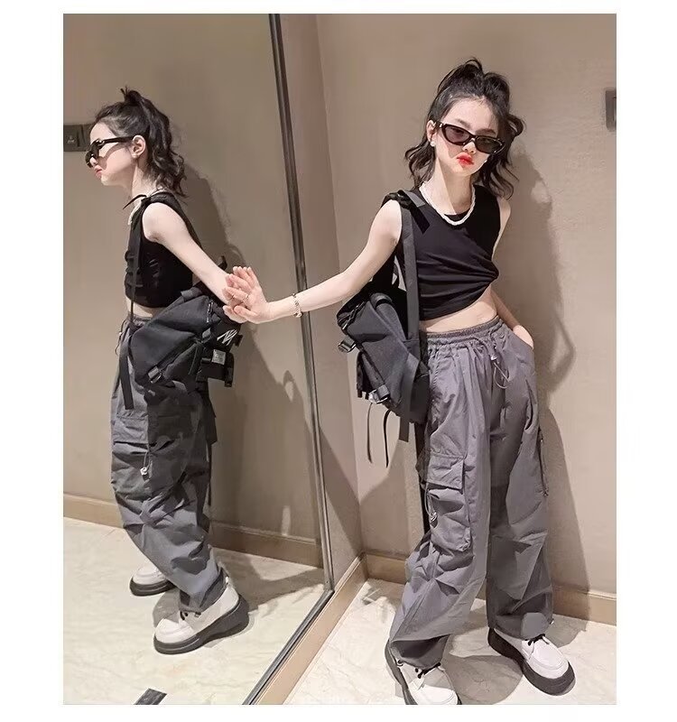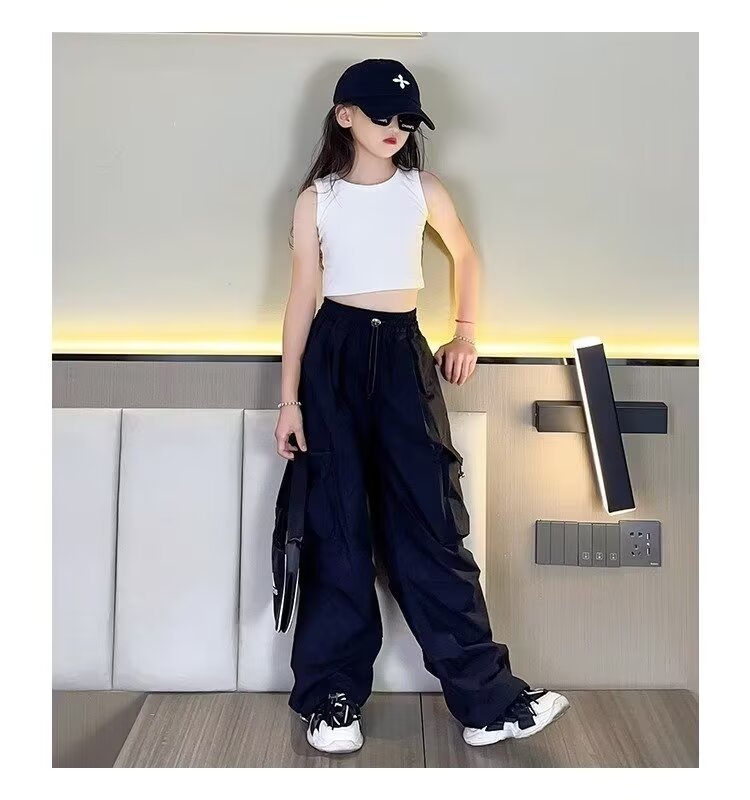 여자 바지 2024 가을 새로운 cuhk 어린이 레저 힙합 스포츠 힙합 긴 바지 겨울 기모