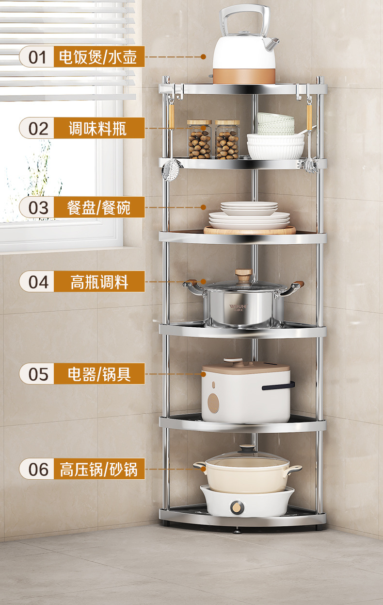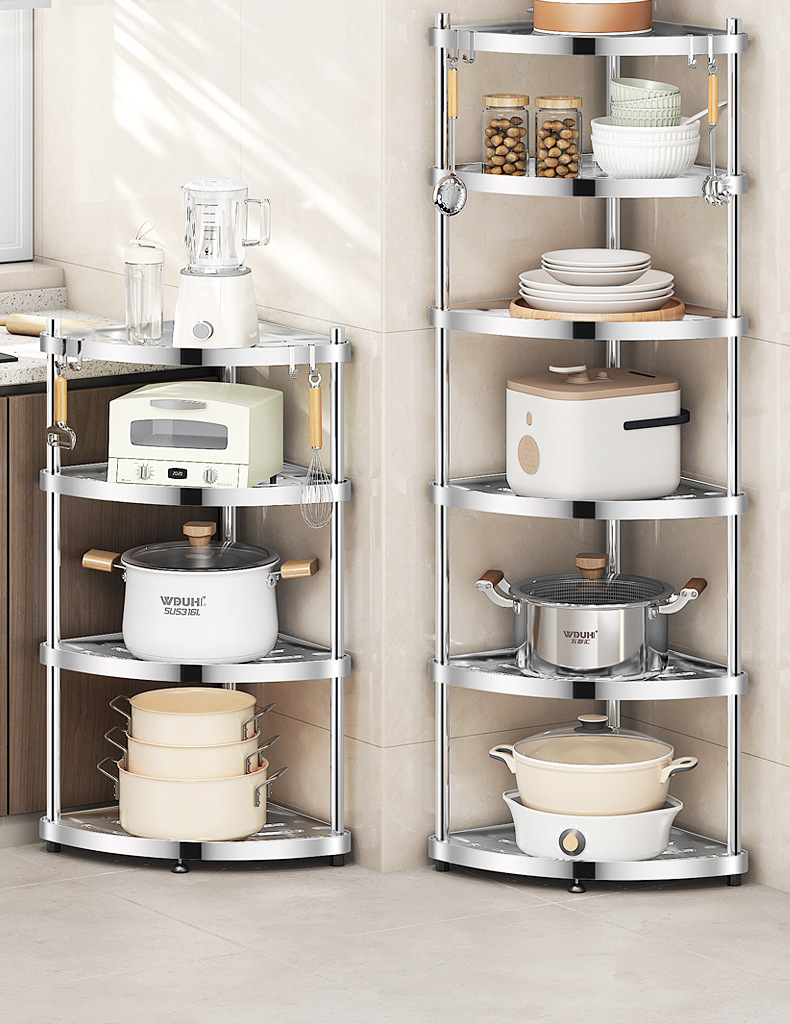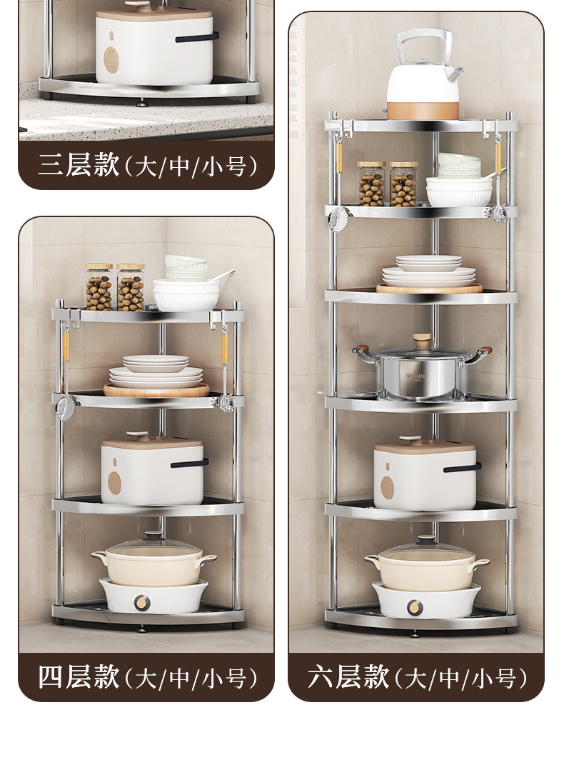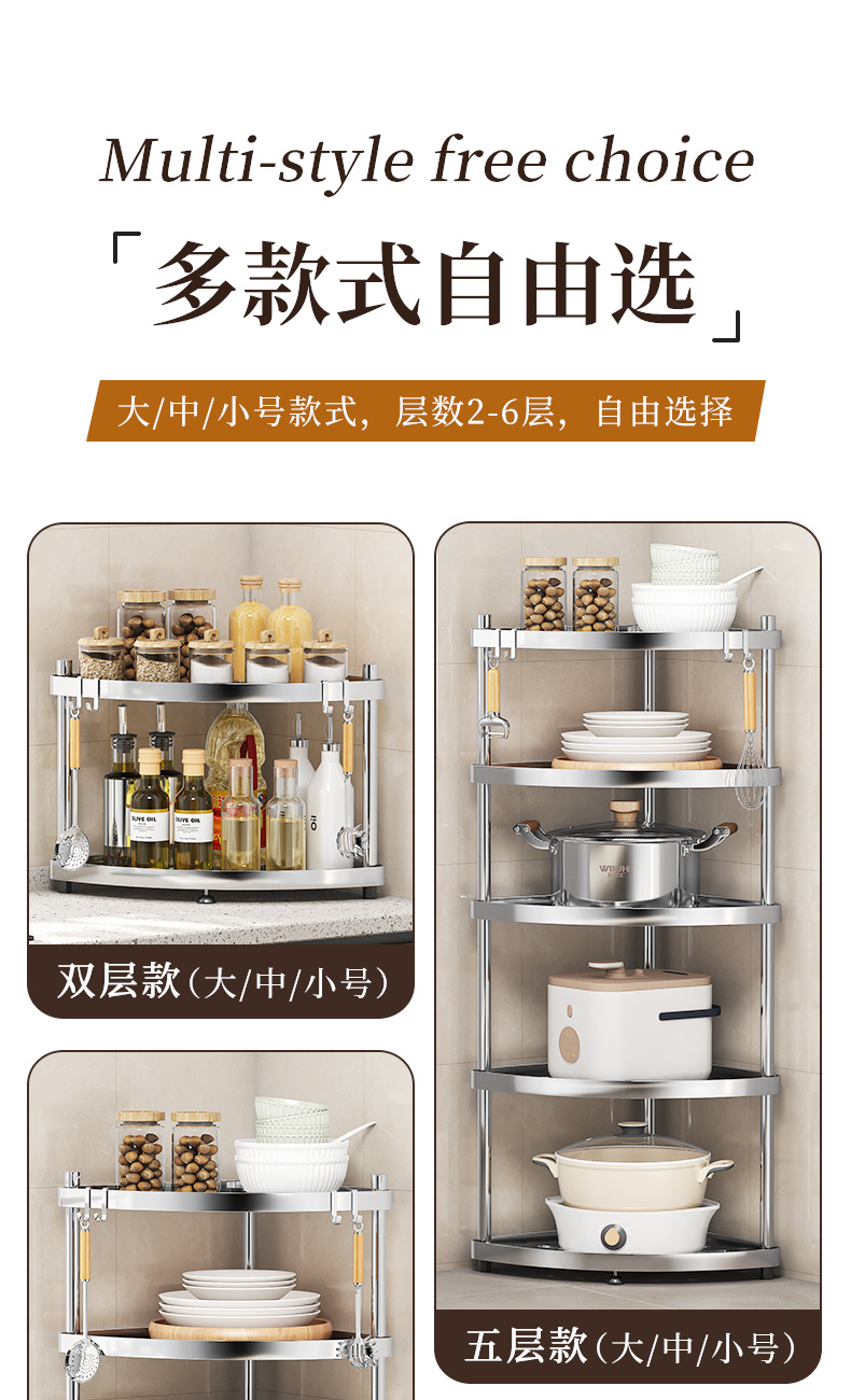 공장 직접 다층 스테인레스 스틸 바닥 보관 랙 커팅 보드 조미료 공급 랙 주방 가정용 삼각대스토어 가기