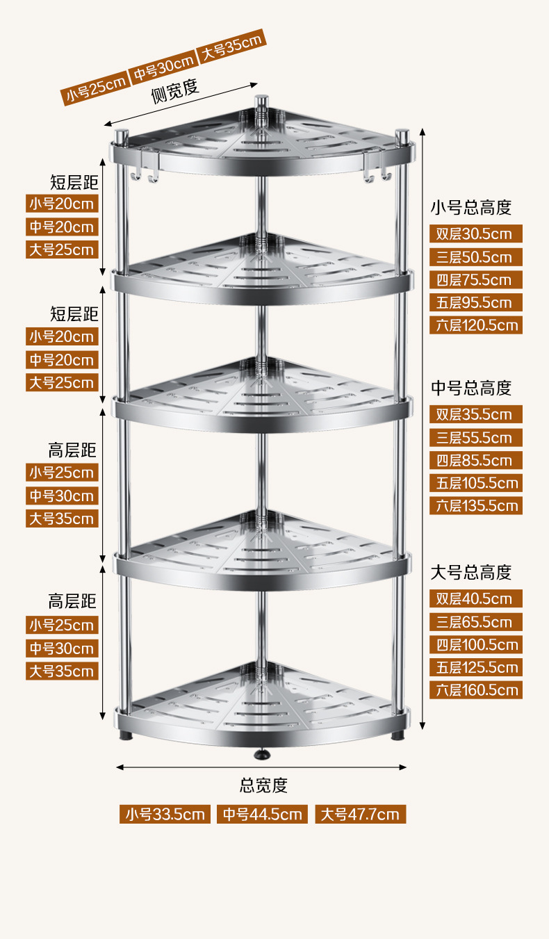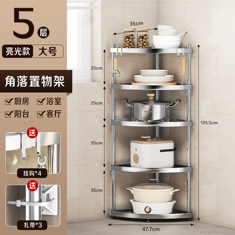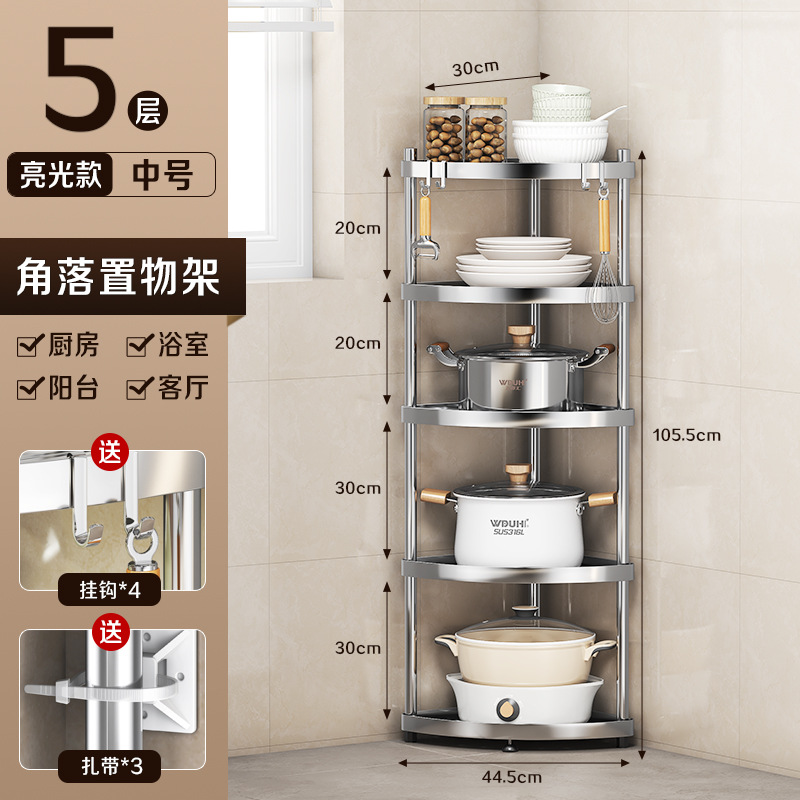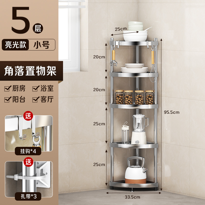 • 5단 소형 삼각 수납선반 [후크 4개 + 고정끈 3개] 브라이트 (다용량 플로어 스탠딩 모델)