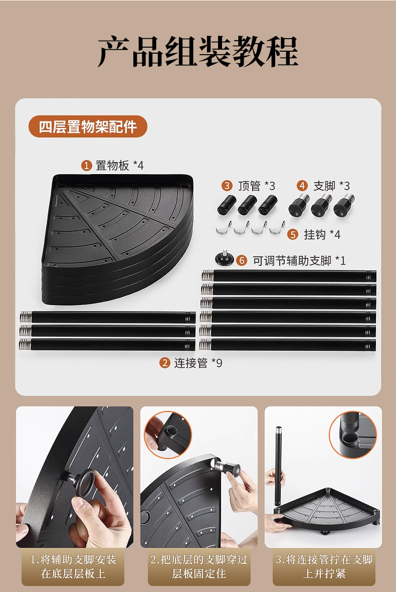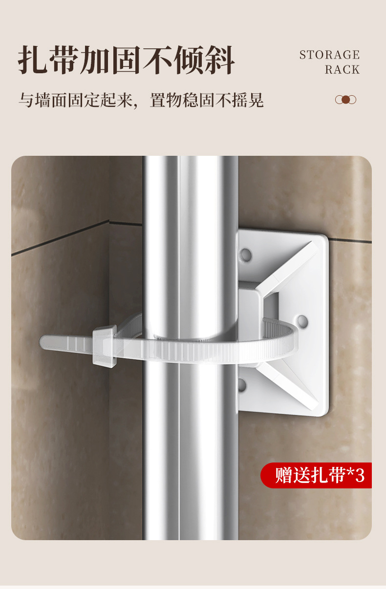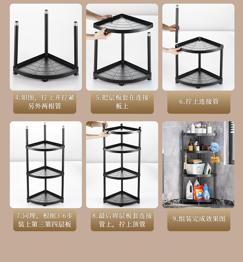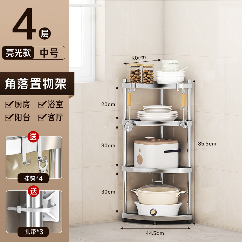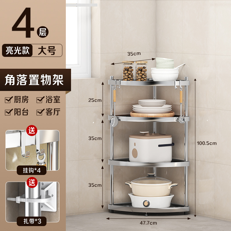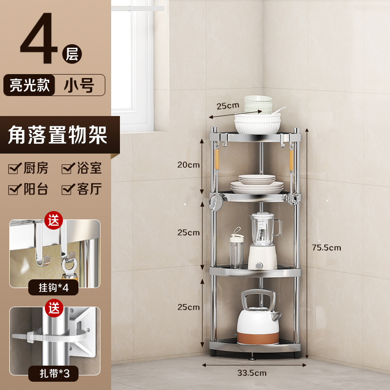 • 4단 소형 삼각 수납선반 [후크 4개 + 고정끈 3개] 브라이트 (다용량 플로어 스탠딩 모델)