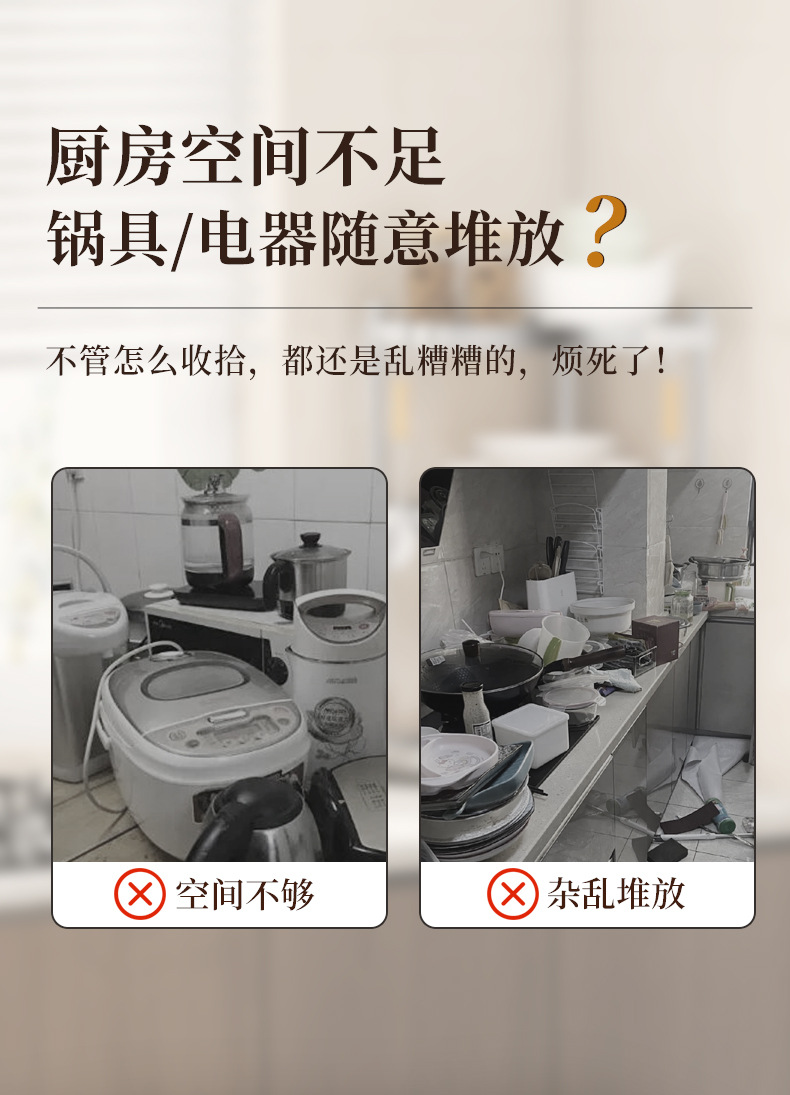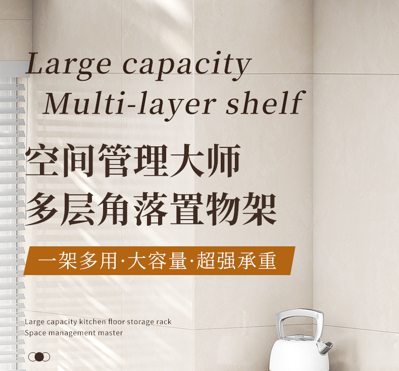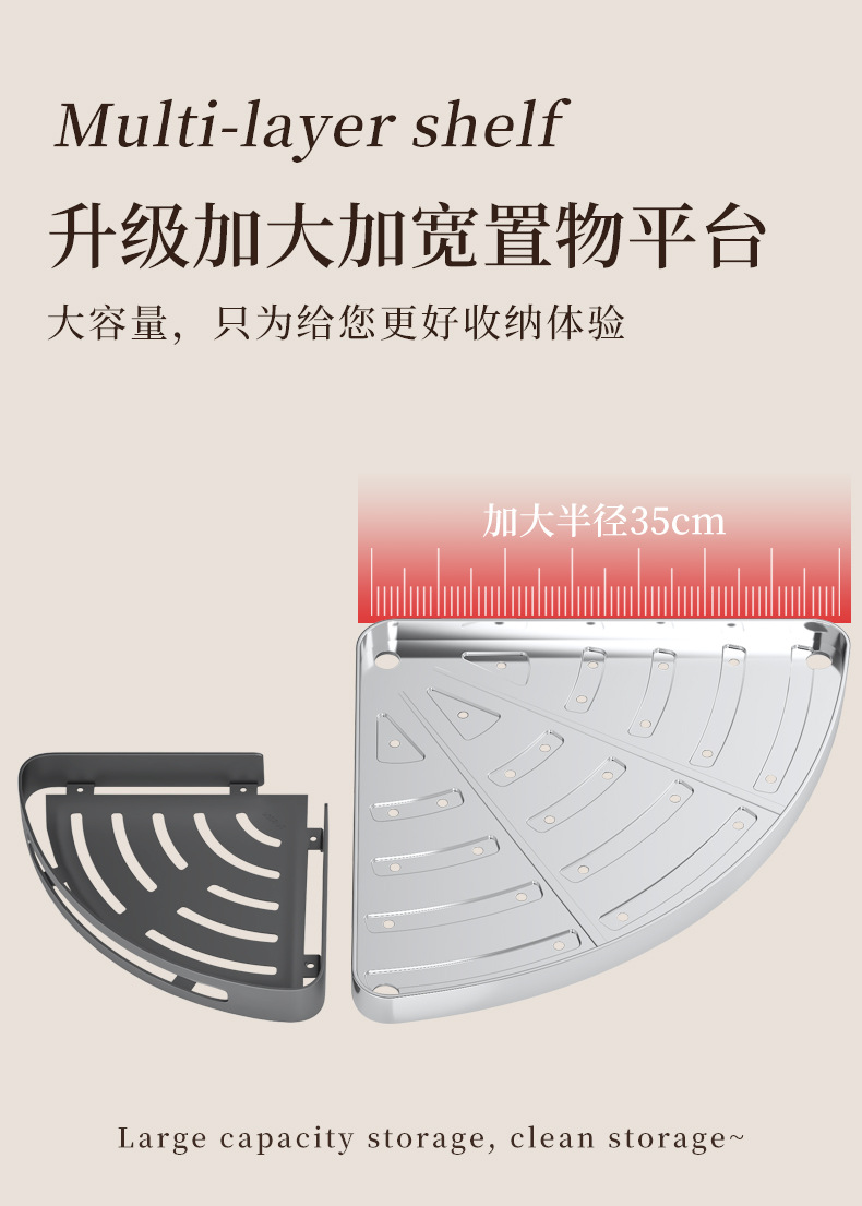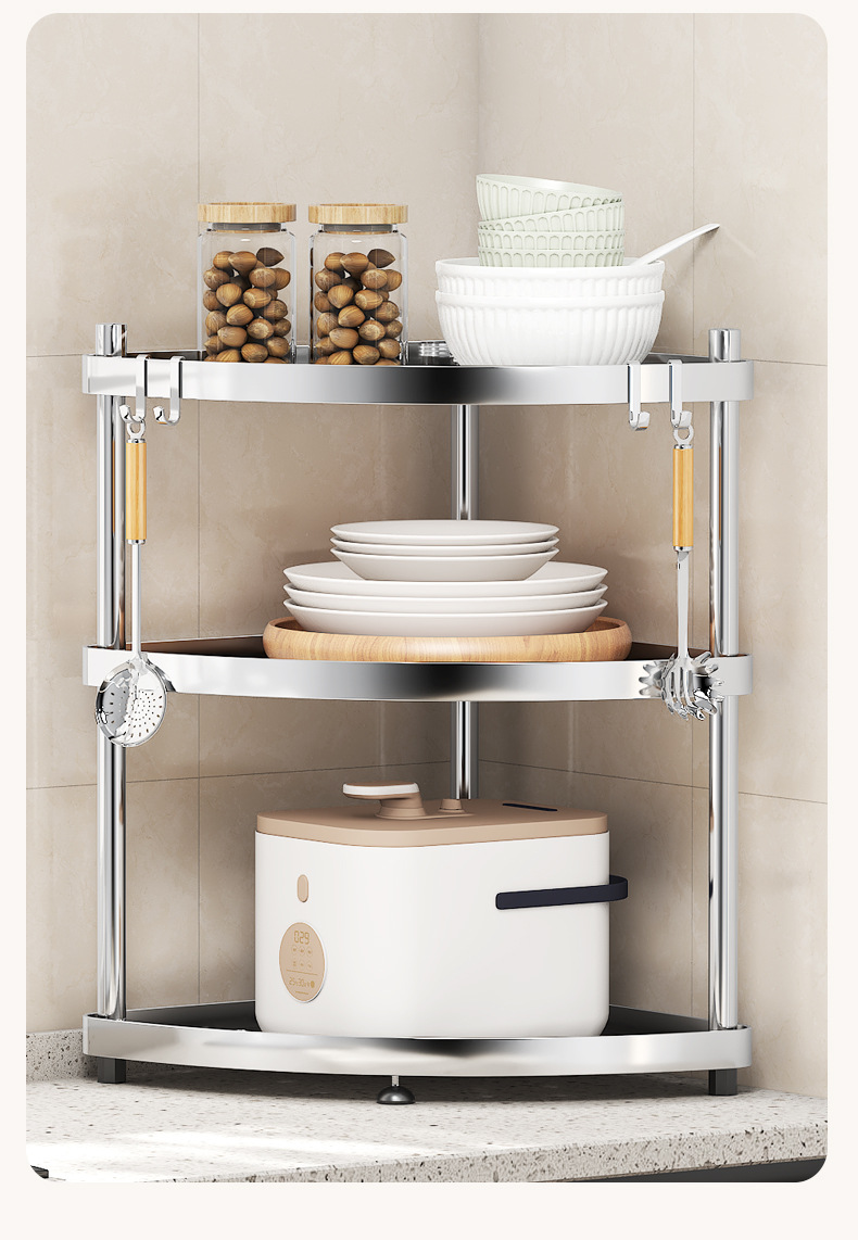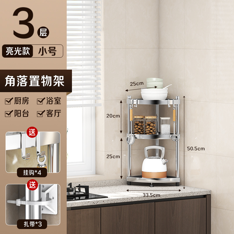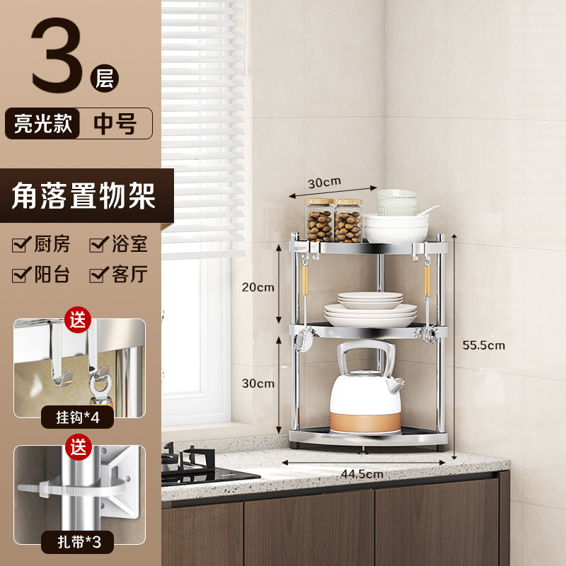 • 3단 중형 삼각 수납선반 [후크 4개 + 고정끈 3개] 브라이트 (주방 데스크탑 모델)