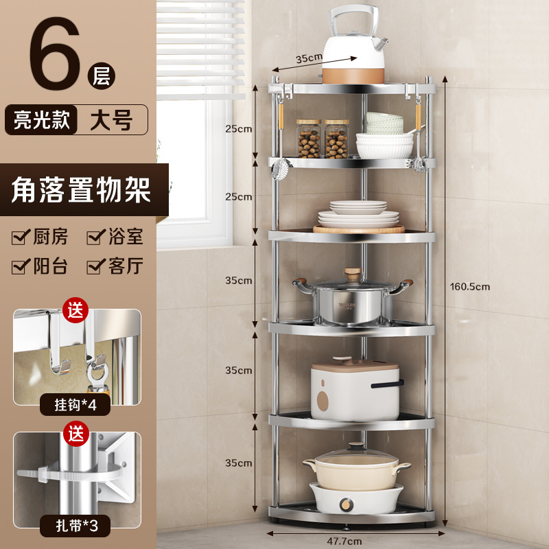 • 6단 대형 삼각 수납선반 [후크 4개 + 고정끈 3개] 브라이트 (다용량 플로어 스탠딩 모델)