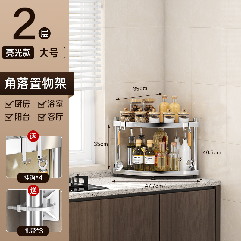 • 2단 대형 삼각 수납선반 [후크 4개 + 고정끈 3개] 브라이트 (주방 데스크탑 모델)
