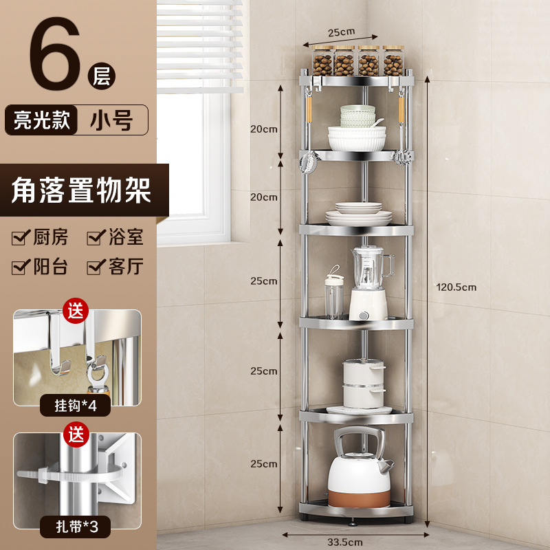 • 6단 소형 삼각 수납선반 [후크 4개 + 고정끈 3개] 브라이트 (다용량 플로어 스탠딩 모델)