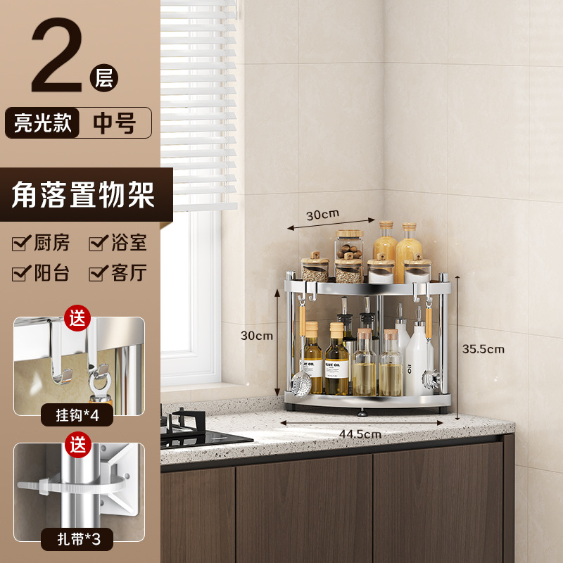 • 2단 중형 삼각 수납선반 [후크 4개 + 고정끈 3개] 브라이트 (주방 데스크탑 모델)