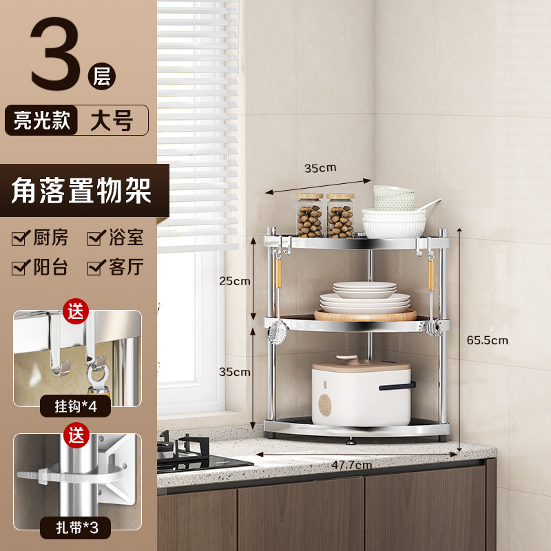 • 3단 대형 삼각 수납선반 [후크 4개 + 고정끈 3개] 브라이트 (주방 데스크탑 모델)