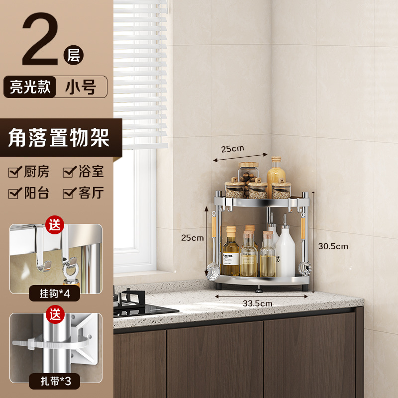 • 2단 소형 삼각 수납선반 [후크 4개 + 고정끈 3개] 브라이트 (주방 데스크탑 모델)
