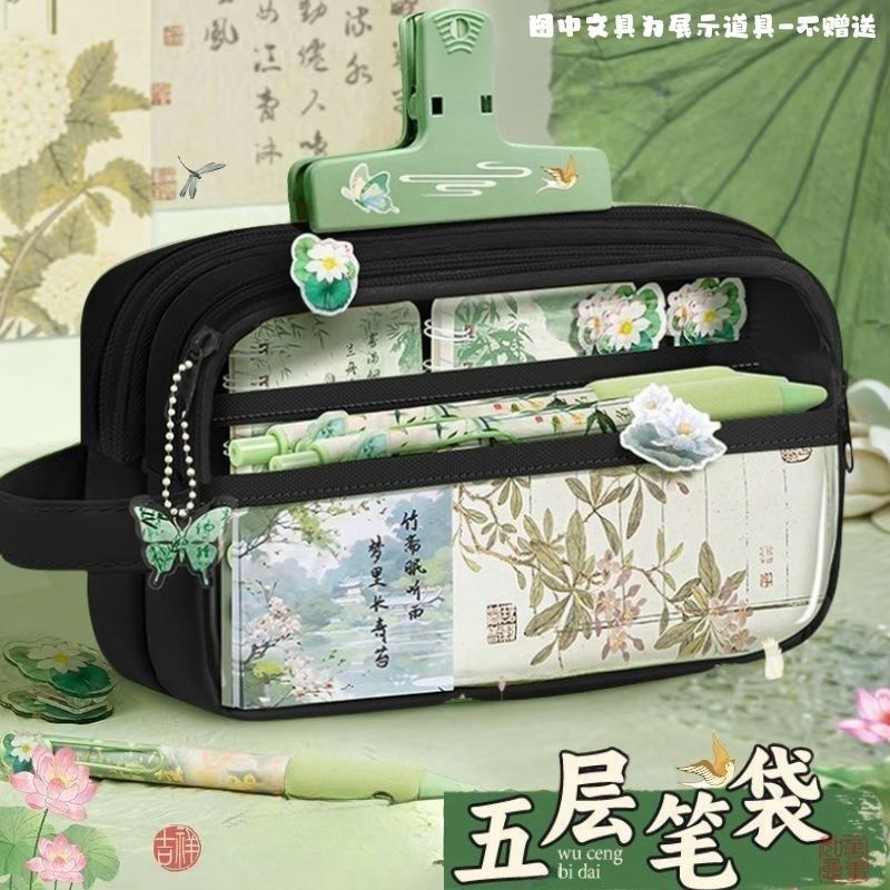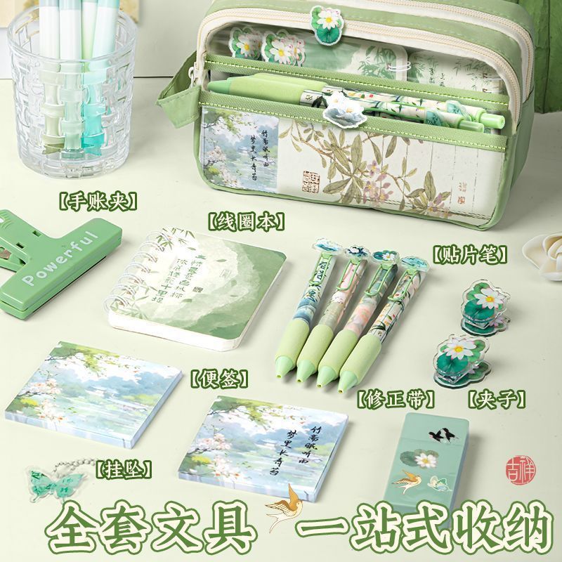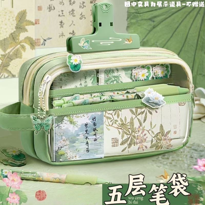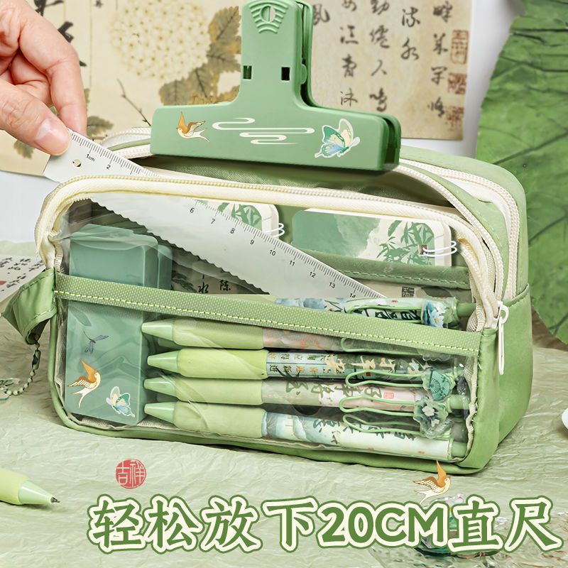 높은 Yan 가치 Guofeng 연필 가방 중학생 학습 용품 대용량 문구 가방 새로운 중국 문구 세트 상스토어 가기