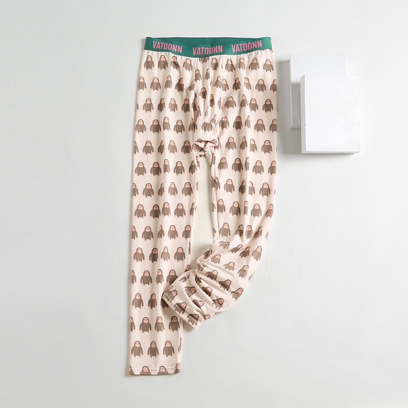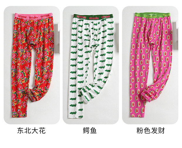 남자의 가을과 겨울 따뜻한 바지 가을 바지 유행 높은 탄성 넓은 허리 면 동북 큰 꽃 바디 피팅 바지 얇은 중간 허리 바지